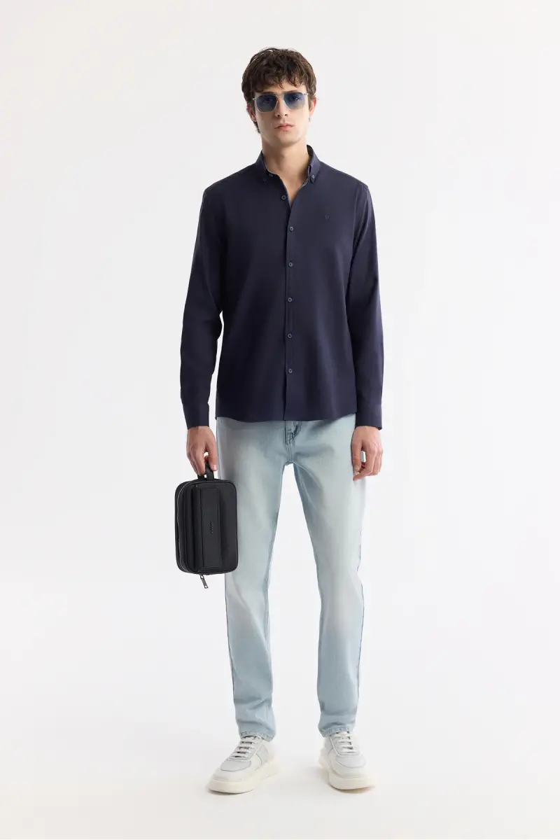 If you are looking for a shirt that combines style and comfort and will be an indispensable part of your daily life, you are in the right place. Men's Navy Button Down Collar Shirt 100% Cotton Oxford Regular Fit B002034 features a timeless design that suits every style. Made from 100% cotton Oxford fabric, the shirt offers comfort all day long with its soft texture and breathable structure. Its button-down collar and regular fit cut provide a stylish and modern look.