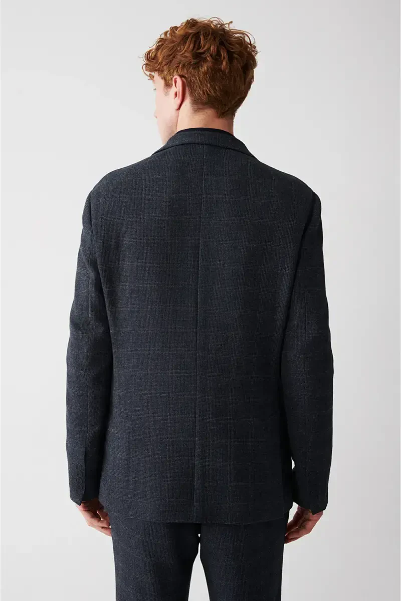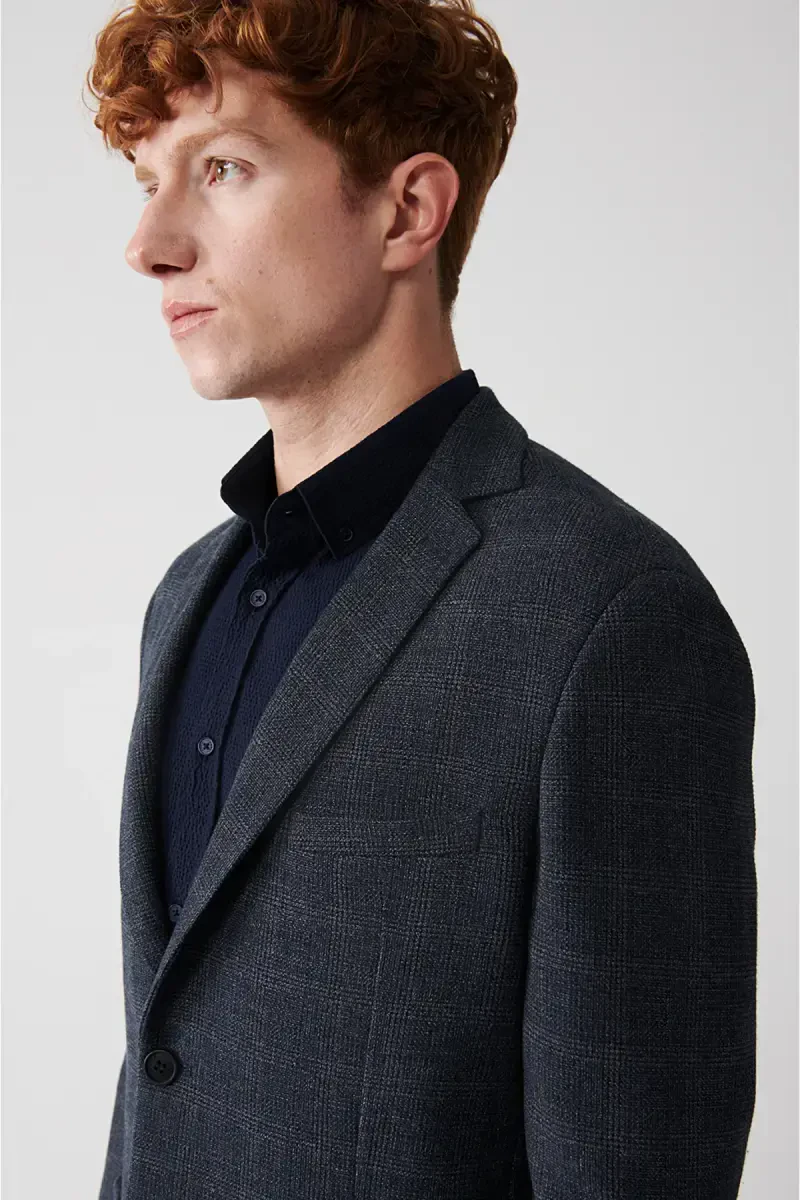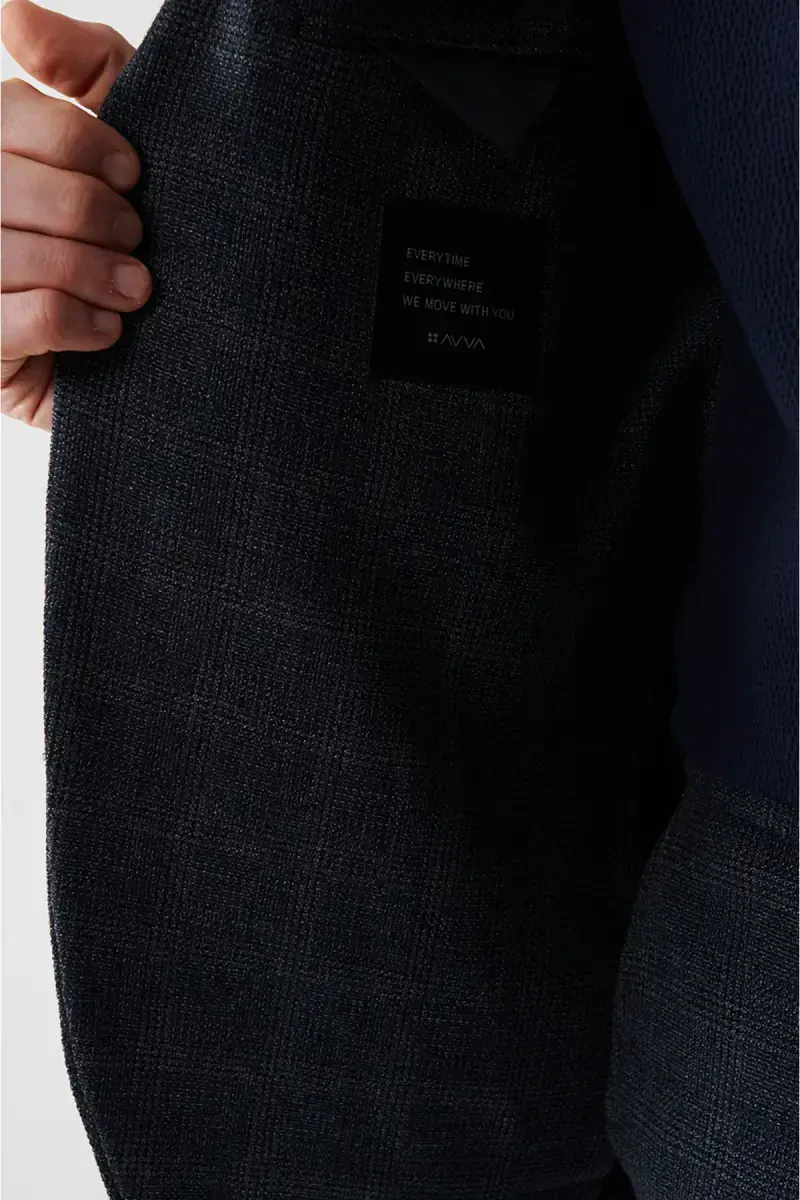 360 degrees stretchable fabric, Mono collar, Pocket pockets, Unlined, 6 Drop, Plaid fabric, Comfort Slim Fit Jacket