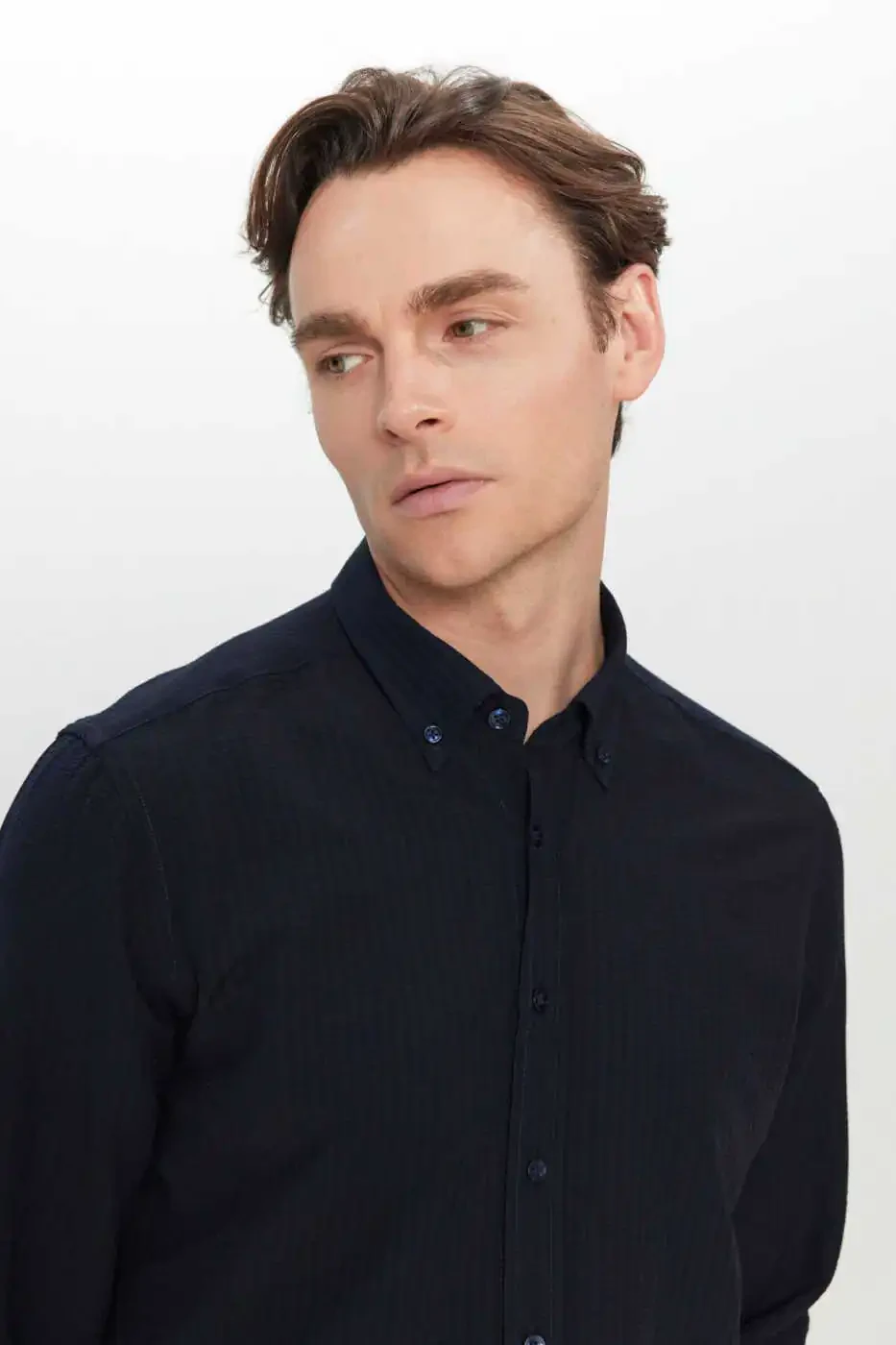Experience elegance and comfort together with the Altınyıldız Classics Men's Navy Blue Slim Fit Narrow Cut Button-Down Collar Textured Gingham Patterned Shirt. This standout piece from the summer collection is a must-have option for the modern man's wardrobe. The special textured gingham pattern adds a unique dimension to the shirt, while the navy blue color ensures compatibility with any setting. The slim fit cut hugs the body, providing a dynamic look with its narrow cut design. Its button-down collar and long sleeves make it easy to use in both classic and sporty combinations. The pocketless design supports the shirt's modern and minimalist aesthetic. This shirt, from the Altınyıldız Classics Travel series, offers comfort and style that will accompany you on your travels. Easily found with product code ACE020252171LAC, this shirt provides all-day comfort thanks to its fabric blend of 62% viscose, 35% polyester, and 3% elastane. The fabric's breathable structure minimizes sweating, especially in summer. The shirt's textured weave adds durability and longevity to the fabric, while the gingham pattern provides a lively and stylish look. This special design shirt helps you reflect your style in any setting, from business meetings to special events, daily use to weekend getaways. Produced with Altınyıldız Classics quality, this shirt will be an indispensable part of your wardrobe for many years. It is an ideal choice for men who seek both elegance and comfort. You can create your own style by combining the shirt with different colored trousers and jackets. Complete your outfit by using a stylish watch or belt as an accessory. Remember, with the right combinations, this shirt always ensures you look striking and stylish.