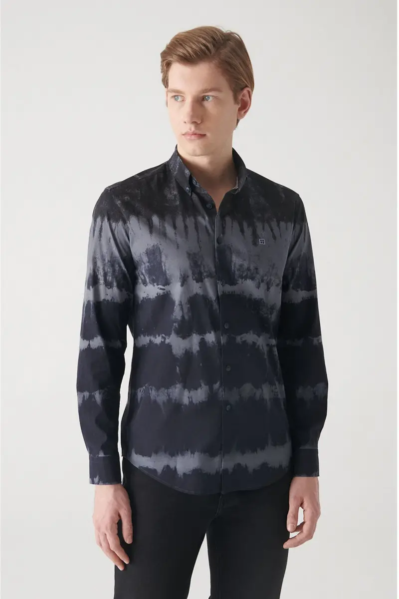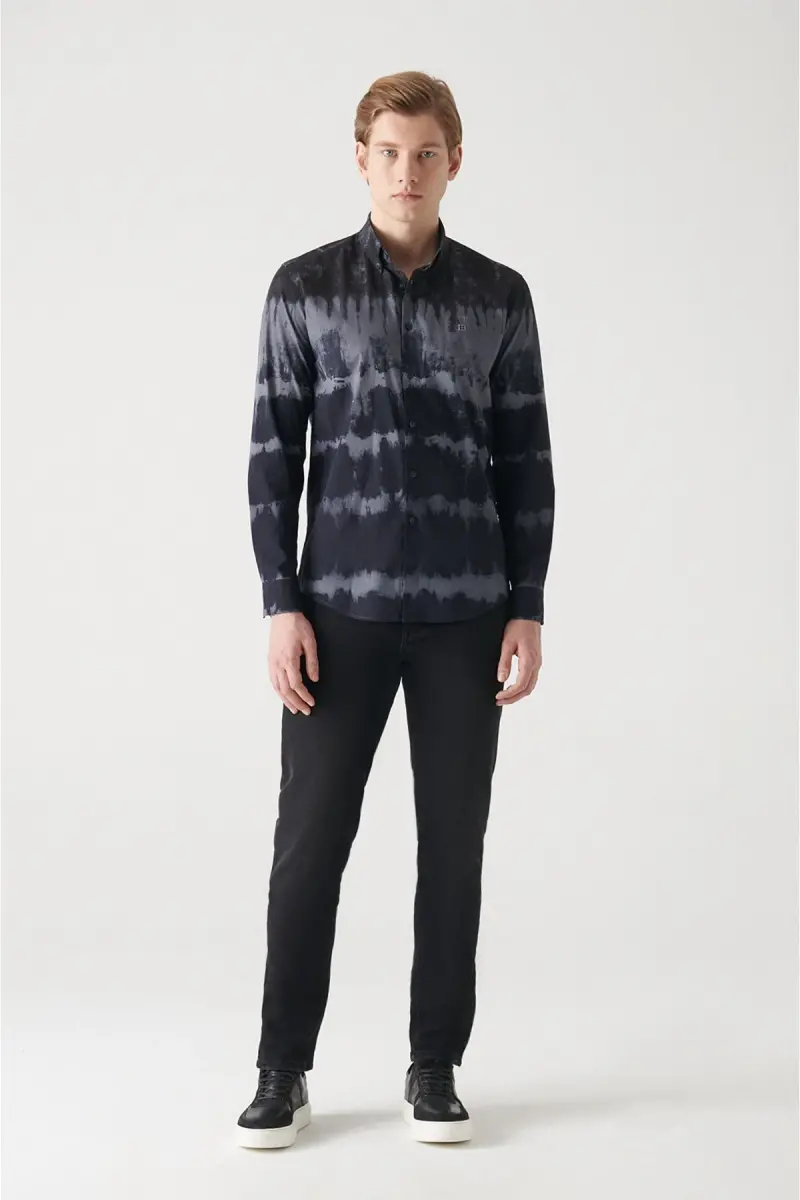 Make a statement with the Men's Navy Printed Button-Down Collar 100% Cotton Slim Fit Skinny Fit Shirt A22y2070, which combines style and comfort. This shirt, with its elegant navy color and modern print, is a perfect choice for everyday life and special occasions. Made from 100% cotton fabric, the shirt offers breathability and a soft texture for all-day comfort. The slim fit cut provides a perfect fit to your body, creating a sleek look. The button-down collar adds a touch of elegance and sophistication. This shirt combines perfectly with jeans, chinos, suits, and similar outfits, allowing you to create a style that suits every occasion.