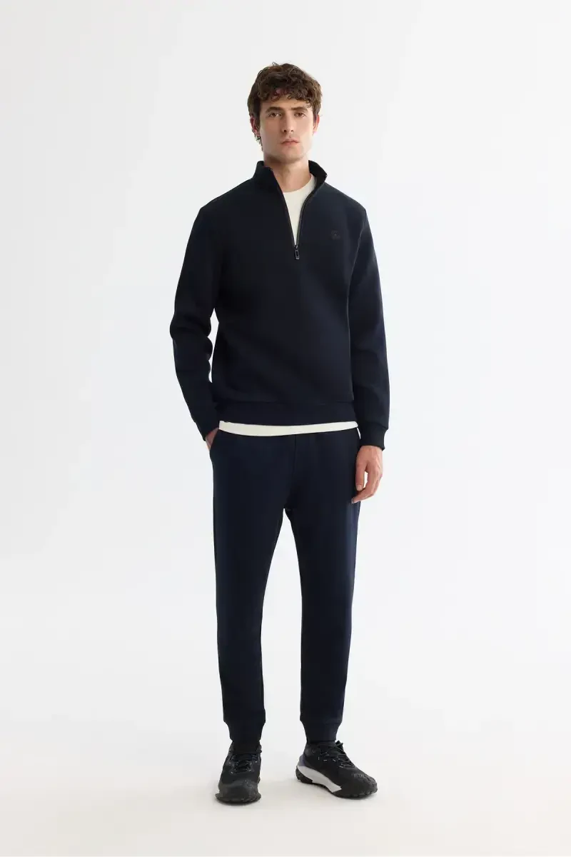The Men's Navy Unisex Sweatshirt is the perfect choice for staying warm and stylish on cold winter days. With its crew neck and zippered design, this sweatshirt adds a touch of sophistication to your style, while the polar lining keeps you warm from the cold.