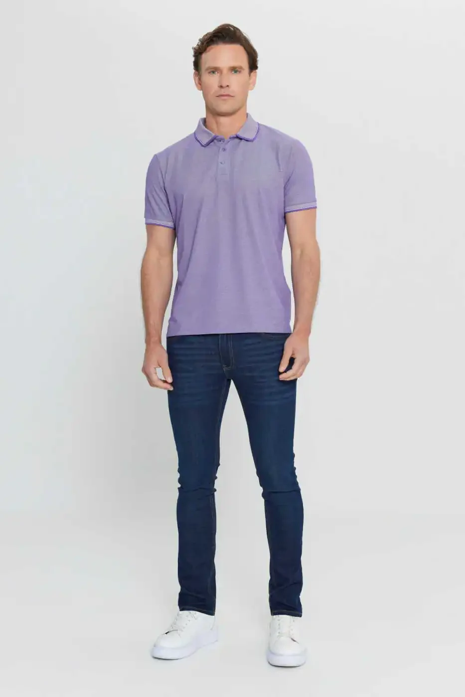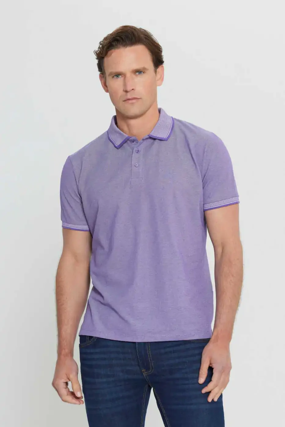 Experience elegance and comfort together with the Altınyıldız Classics Men's Shrink-Resistant Cotton Fabric Slim Fit Narrow Cut Purple-White Non-Iron Polo Neck T-Shirt. This specially designed polo neck t-shirt is a must-have piece in the modern man's wardrobe. Thanks to its 55% cotton and 45% polyester blend fabric, it offers comfort all day long, while its slim fit cut fits your body perfectly, giving you a stylish look. The non-iron polo neck feature ensures you always look well-groomed and neat. The harmonious combination of purple and white adds a dynamic and modern touch to the t-shirt, while its plain pattern allows you to create different combinations. This t-shirt, which will complete your elegance whether in daily use or on a special day, is one of the indispensable items of the summer collection. This slim fit polo neck t-shirt, produced with AC Basics quality, is a candidate to be your wardrobe's favorite piece. Thanks to the product's shrink-resistance guarantee, it will maintain its original form for many years under the recommended washing conditions. Produced with special yarns and knitting techniques, the t-shirt also stands out with its durability. This t-shirt, which offers a simple and stylish look with its pocketless design, is an ideal choice for men who embrace both sporty and classic styles. This t-shirt, which prioritizes your comfort without compromising your elegance, keeps you cool and refreshed on hot summer days. This t-shirt, produced with Altınyıldız Classics quality, promises long-lasting use and a stylish look. Don't miss this unique polo neck t-shirt to refresh your wardrobe and bring a different touch to your style. This t-shirt, which is a perfect gift option for both yourself and your loved ones, will appeal to stylish men. With its modern cut, high-quality fabric, and stylish design, this t-shirt will be one of the most valuable pieces in your wardrobe. Remember, elegance is hidden in the details, and this t-shirt will help you reflect your style in the best way.
