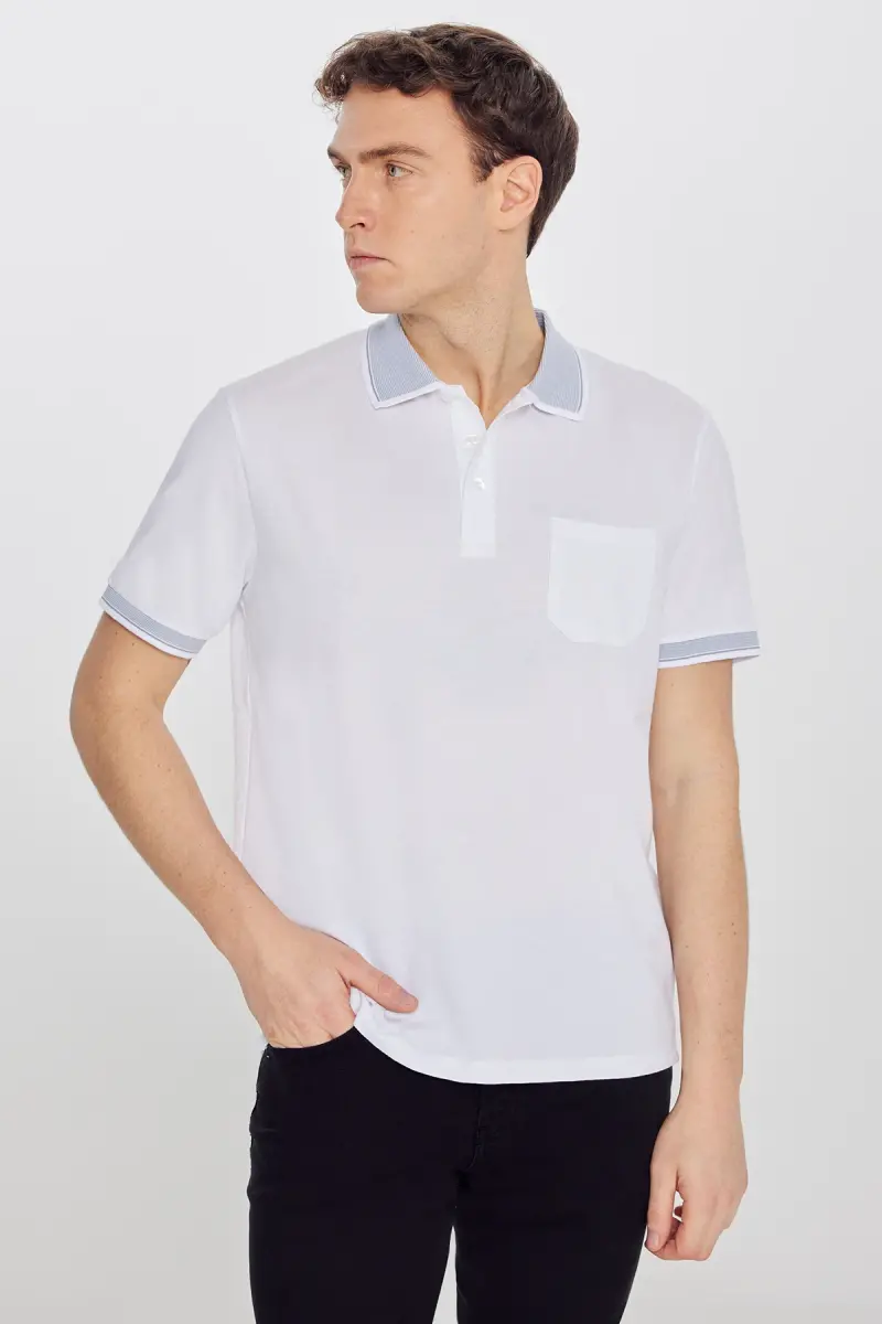 Own an indispensable piece of your wardrobe with the Men's Non-Shrinking Cotton Fabric Regular Fit Relaxed White Wrinkle-Free Polo Collar Pocket T-Shirt! This t-shirt is ready to accompany you in your daily life by combining both elegance and comfort. Thanks to its 55% cotton and 45% polyester blend fabric, it offers comfort all day long while minimizing sweating problems. With its breathable structure, it provides a comfortable use even in hot weather. This t-shirt, produced with Altınyıldız Classics quality, guarantees durability and long-lasting use. Appealing to men of all ages who seek elegance and comfort together, this t-shirt adapts to any environment with its straight cut and plain design. It is an ideal choice for those who seek elegance and comfort together in daily wear. Thanks to its short-sleeved design, it can be easily preferred in spring and summer months, while its polo collar detail highlights your elegance. The regular fit cut fits your body perfectly, offering you freedom of movement. You can complete your daily style by combining it with jeans or shorts. This t-shirt, which you can easily prefer in casual environments, will be one of the most used pieces in your wardrobe. The woven fabric type increases the durability of the t-shirt, while its basic silhouette allows it to be easily combined with any style. Thanks to its wrinkle-free feature, it ensures that you always look well-groomed and stylish. The pocketed design offers usability, allowing you to carry your small items with you. The white color offers a timeless elegance by adapting to any combination. Complete your style and enjoy comfort all day long with the Men's Non-Shrinking Cotton Fabric Regular Fit Relaxed White Wrinkle-Free Polo Collar Pocket T-Shirt!