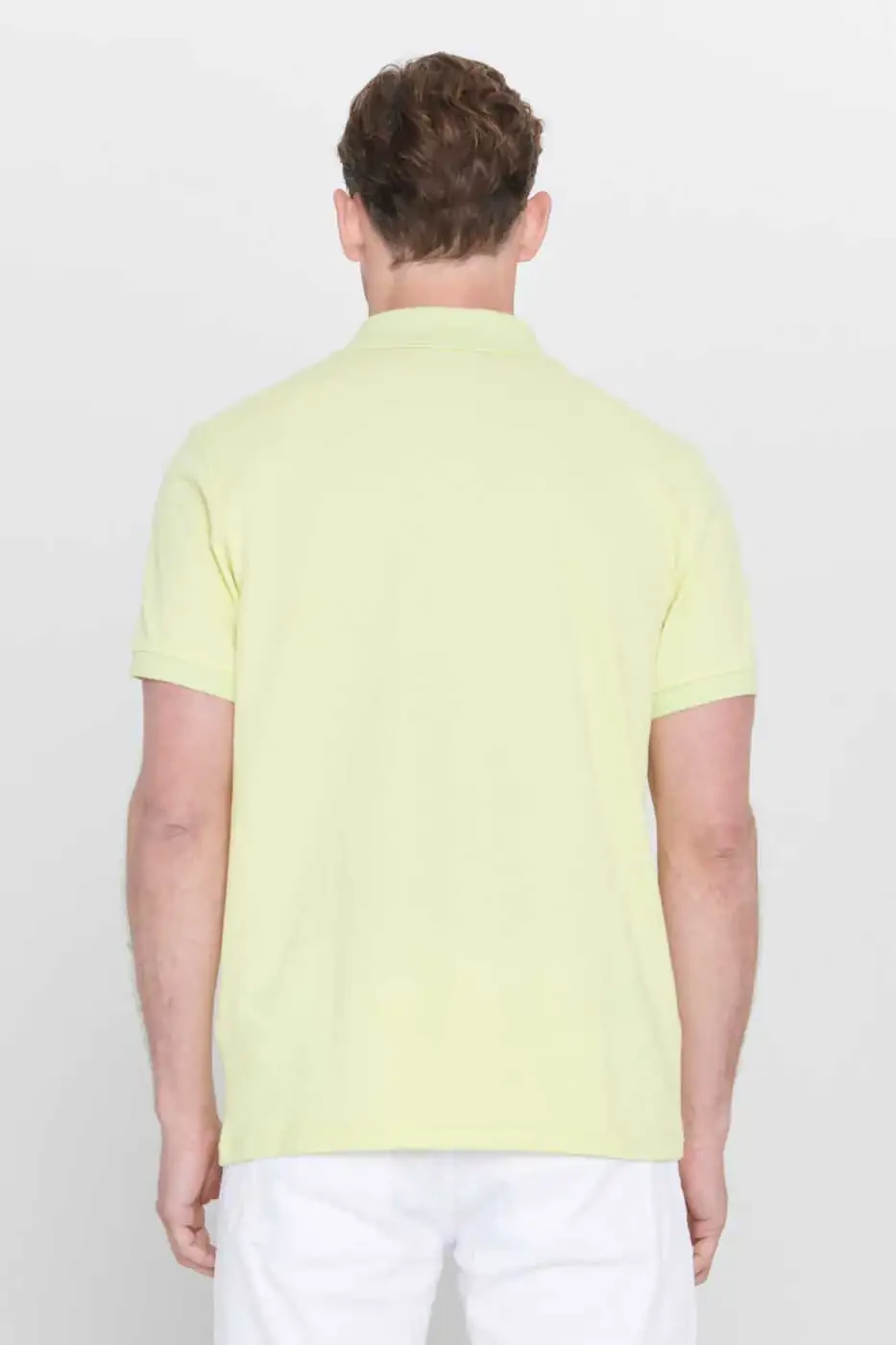 Designed for modern men who seek both elegance and comfort, the Men's Peanut Green Slim Fit Narrow Cut Polo Collar Printed Cotton T-shirt is set to become one of the indispensable pieces of your wardrobe! Produced with Altınyıldız Classics quality, this t-shirt allows you to achieve a stylish look both in daily life and on special occasions. The peanut green color offers a trendy option that is compatible with all kinds of combinations. Its slim fit narrow cut perfectly reveals your body lines, while its cotton fabric provides comfort and breathability throughout the day. The polo collar detail adds a classic and stylish touch, while the printed design allows you to reflect your style. Thanks to its knitted fabric structure, it does not restrict your freedom of movement and offers flexible use. The sleeveless arm design, which keeps you cool and comfortable in the summer months, completes the elegance of the t-shirt. With its durable structure and easy-to-clean feature, it remains like the first day for a long time. This t-shirt is an ideal choice for men who seek both elegance and comfort. It can be easily combined with any trousers, shorts or shoes, and allows you to achieve a stylish look in any environment. Don't miss this opportunity in our stock and add elegance to your wardrobe!