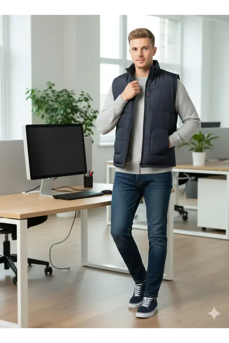 Designed to keep you warm on cold winter days, the HeviStor Men's Puffer Vest combines style and comfort. Made from high-quality materials, the vest offers freedom of movement with its lightweight construction, while its filling provides superior thermal insulation.