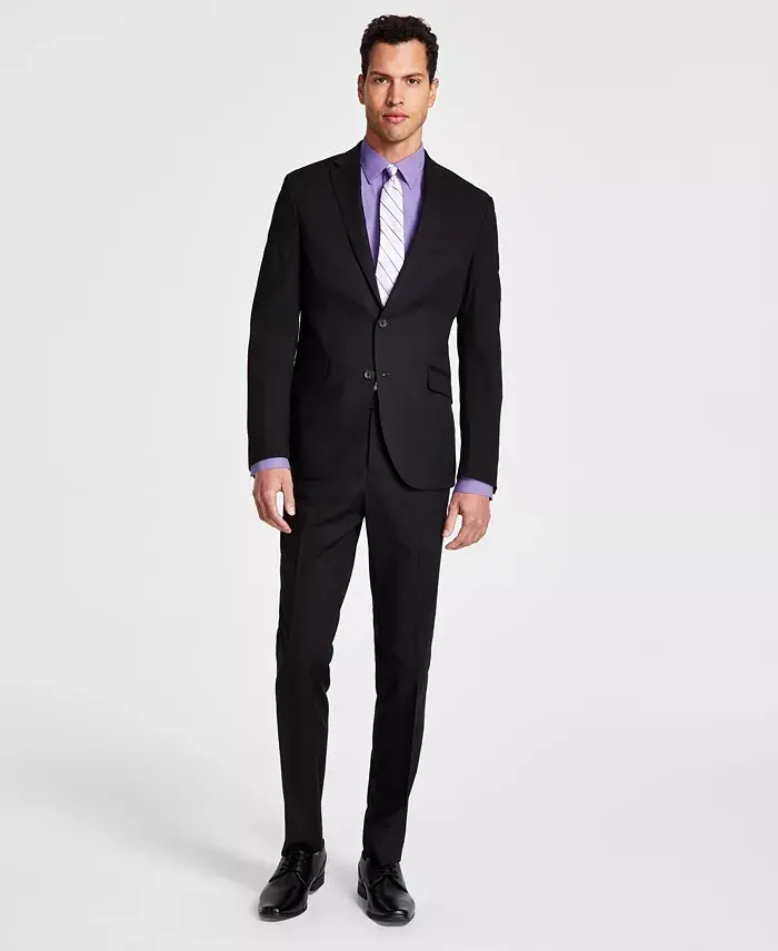 Erkaklar kostyumi, slim fit kostyum, stretch kostyum, qulay kostyum, tayyor po'chali kostyum, Kenneth Cole, Techni-Cole, basketweave kostyum, elastik bel, import kostyum