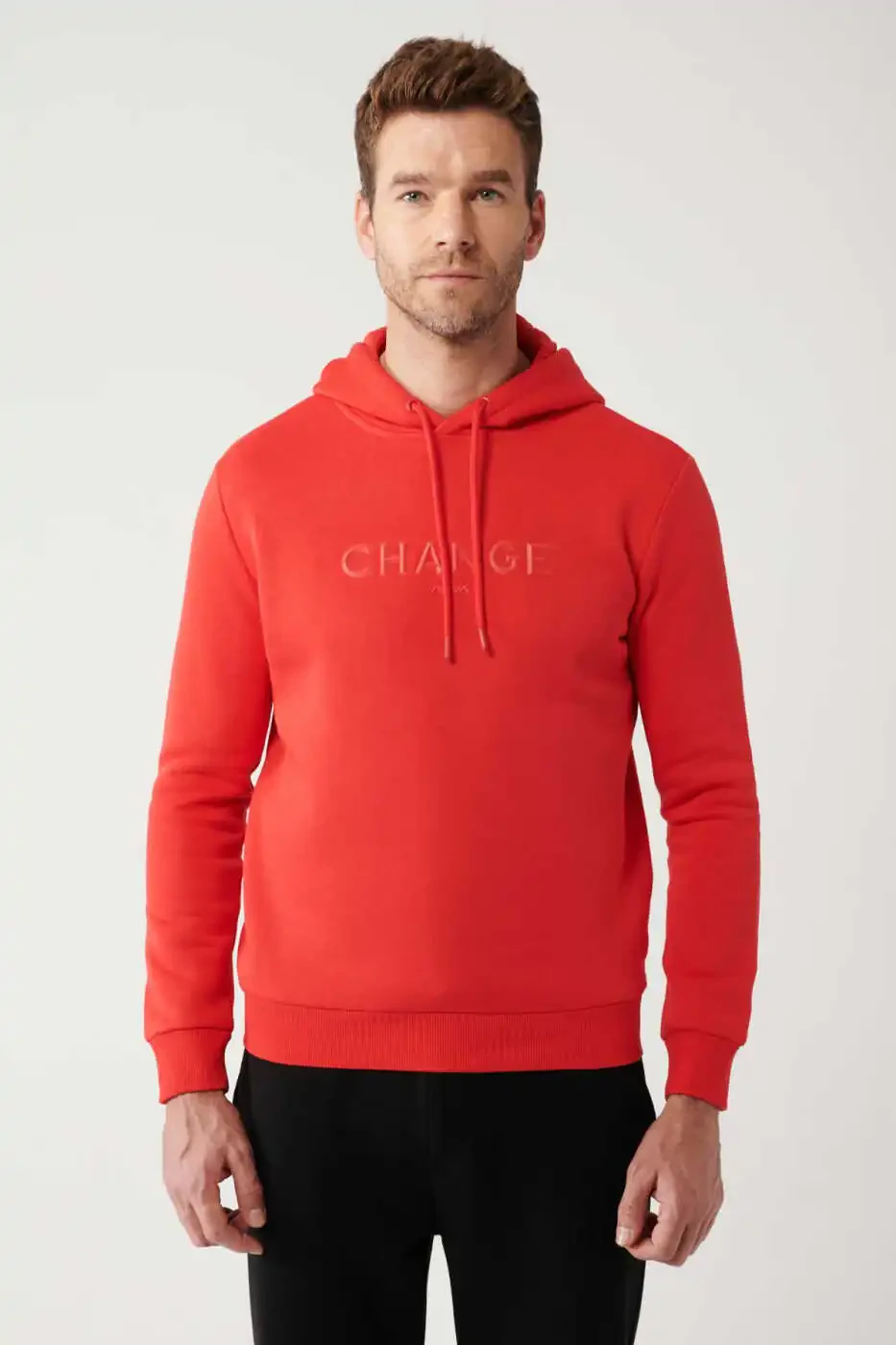 Men's Red Sweatshirt Hooded Neck 3 Ply Combed Pyramid Printed Regular Fit A32y1240, which will allow you to get a stylish and comfortable look both in everyday life and on special occasions, will be one of the indispensable pieces of your wardrobe.