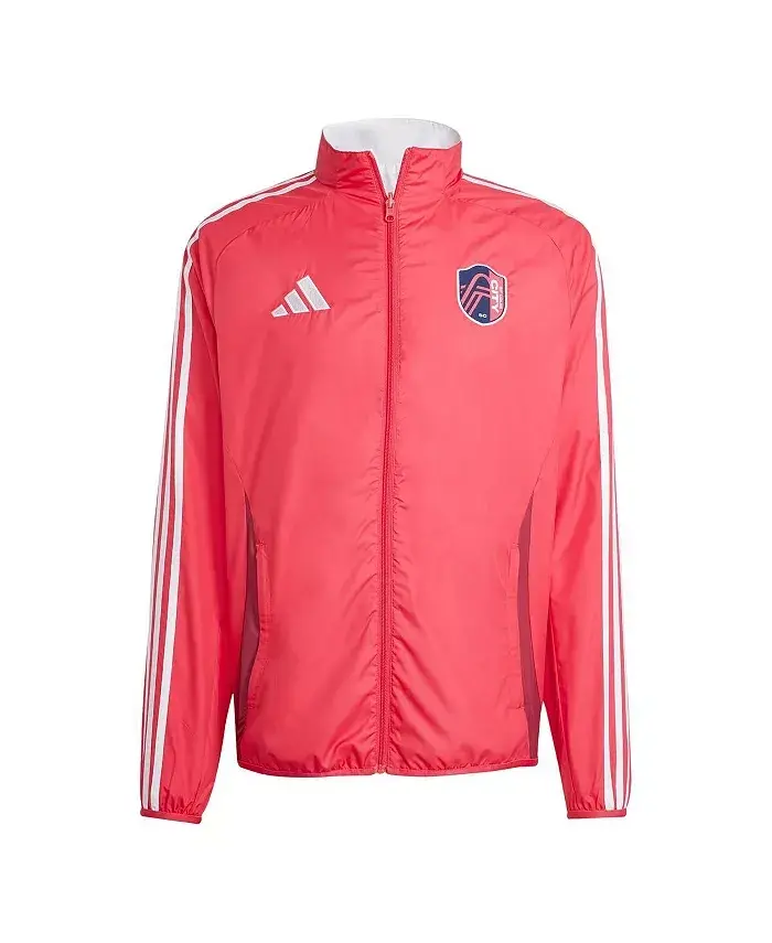 For those who want to show their commitment to their team as St. Louis City SC fans at all times, Adidas' Men's Red/White St. Louis City SC 2025 Anthem Reversible Full-Zip Jacket, designed by Adidas, will be an indispensable part of your wardrobe. This special design jacket not only offers a stylish look, but also provides practical and versatile use. You can express your style on match days, workouts or daily activities with this reversible (double-sided) jacket that combines two different looks in one product. On one side of the jacket, St. Louis City SC's iconic colors and logo are processed with high quality printing technique, while on the other side, there is a more modern and dynamic sublimation pattern. In this way, you can easily change your clothes according to your mood and environment. Thanks to its midweight structure, this jacket offers optimum comfort in temperate weather. Its structure, which is neither too thick nor too thin, protects you from cool weather without restricting your freedom of movement. Thanks to its full-length zipper, it can be easily put on and taken off, and its high collar provides additional protection. The handy pockets on both sides of the jacket allow you to safely carry your phone, keys or other small items. Elastic cuffs and hem ensure that the jacket fits your body perfectly and keeps the heat inside. Produced with Adidas quality, this jacket is made of long-lasting and durable materials. This stylish and functional jacket, which reflects your passion for St. Louis City SC, will be a piece that you can proudly wear both on and off the field. Remember, this special design jacket is only sold online and cannot be returned to Modazone stores.