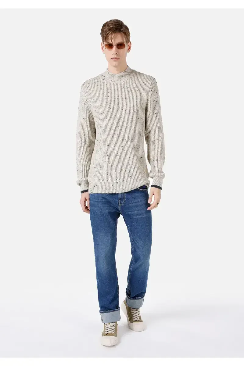 Meet the Regular Fit Fisherman Neck Stone Men's Sweater, for a sophisticated look that reflects your style. Offering comfort all day long with its soft and comfortable texture, this sweater is a stylish choice for special occasions or your everyday life. The fisherman's neck adorned with natural stone details adds a modern touch, while the regular fit cut adapts to every body type.