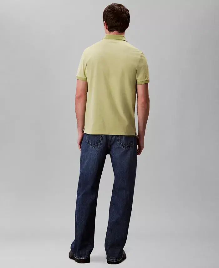 Give your sporty look a modern makeover with the subtle monogram logo embroidery and super-soft feel of this polished polo shirt from Calvin Klein. Approx. model height is 6'1" and he is wearing a size medium Regular fit: relaxed through arms, comfortable fit around body Spread collar; three-button closure Embroidered logo at left chest; vented hem 65% cotton, 35% polyester Machine wash Imported