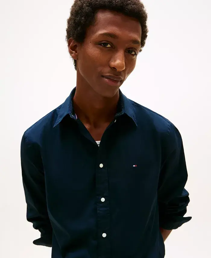 Elevate your everyday style with this stunning Men's Regular-Fit Stretch Poplin Button-Down Shirt - Desert Sky, brought to you by Tommy Hilfiger. Crafted from soft and stylish cotton poplin fabric, this shirt features a button-down collar and button cuffs for a polished look. Its easy-care properties and comfortable regular fit make it a perfect choice for any occasion. The captivating Desert Sky color will add elegance to your style, allowing you to enjoy comfort without compromising on sophistication, whether it's for business or weekend plans. Its high-quality material and impeccable stitching details will make it a staple in your wardrobe for years to come. Its lightweight and breathable nature will keep you cool in summer and serve as a warm inner layer in winter. The perfectly fitting regular fit design will allow you to look stylish without restricting your freedom of movement. The elegant Tommy Hilfiger logo on the left chest is a detail that speaks to the brand's quality and your refined taste. This shirt is an ideal choice for anyone who combines classic elegance with a modern touch. Easily combinable with other pieces in your wardrobe, this versatile shirt guarantees you always look stylish and confident. From business meetings to dinner dates, weekend getaways to special events, this shirt is the perfect choice for any moment; try it now and make a difference in your style.