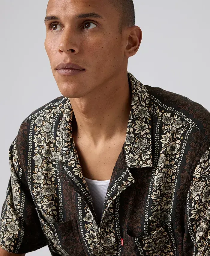 Team up this relaxed-fit floral button-down from Levi's with a pair of cutoffs for a look that channels the vibes of the great outdoors with ease and style. Type of fit: relaxed fit Type of neckline or collar: spread collar; closure: button Sleeve length: long sleeves Type of pattern: floral pattern 100% cotton Machine wash Imported