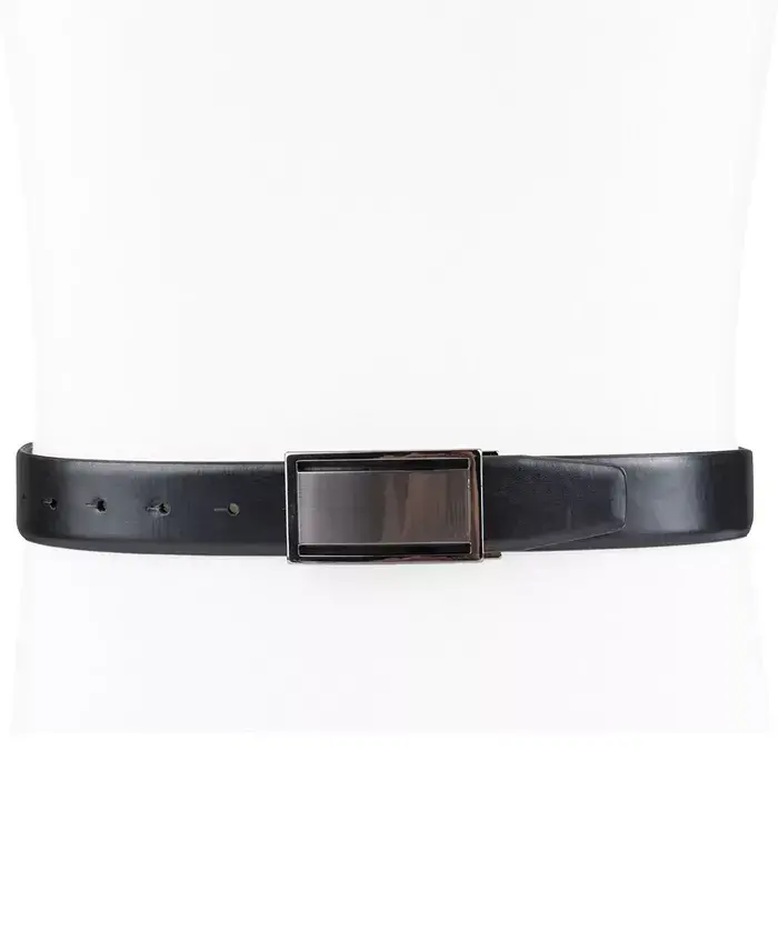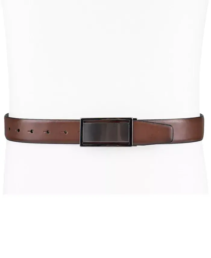 Men's Reversible Cut-Out Plaque Belt, Created for Modazone-Brown/Black. Material: Leather. 1 3/8 inches wide. Cut-out plaque buckle. Reversible design. Brown/Black color.