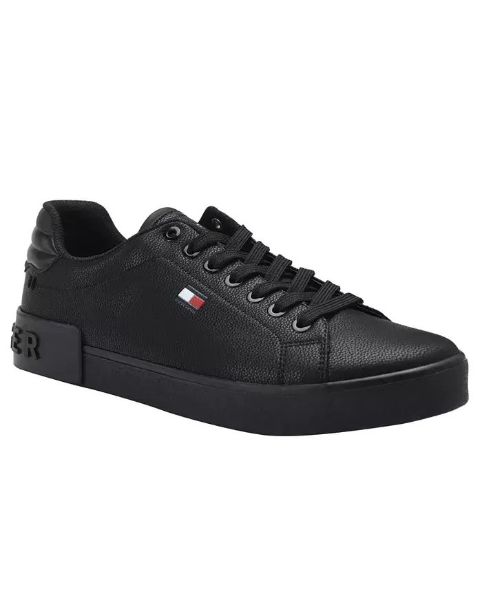 Meet the Men's Rezz Lace Up Low Top Sneakers-All Black, the perfect choice for the modern man seeking timeless style and superior comfort. These sleek and versatile sneakers are designed to deliver comfort with a sophisticated touch, making them a perfect addition to any wardrobe. Whether it's a weekend outing or a night on the town, the Rezz sneakers are ideal for any occasion. Crafted with Tommy Hilfiger's signature quality and attention to detail, these shoes offer durability and style. The upper is made from premium faux leather and synthetic materials for a sleek and modern look. The shoe's all-black color palette makes it a versatile option, easily pairing with any outfit. Whether it's jeans and a t-shirt or a more dressed-up ensemble, the Rezz sneakers will elevate any look. One of the standout features of these shoes is their exceptional comfort. The softly padded collar provides a comfortable fit around the ankle, while the memory foam cushioned insole offers all-day support and cushioning. Even if you're on your feet for extended periods, your feet will feel comfortable and supported. Additionally, the durable rubber outsole provides excellent traction and stability, making them ideal for walking on various surfaces. The Rezz low-top sneakers also boast subtle details. The signature flag logo and heel wrap branding add a subtle touch of luxury to the shoe, while the round toe creates a classic and timeless silhouette. The lace-up design allows for a personalized fit, and the breathable textile lining helps keep your feet cool and dry throughout the day. Founded in 1985, Tommy Hilfiger is a leading lifestyle brand that celebrates the essence of classic American cool style. The Rezz low-top sneakers are a testament to the brand's commitment to quality, style, and comfort. These shoes are a must-have for any man looking for a shoe that is both stylish and comfortable. In summary, the Men's Rezz Lace Up Low Top Sneakers-All Black are the perfect shoes that combine style, comfort, and versatility. With their durable construction, cushioned insole, and stylish design, these shoes are ideal for any occasion. Whether you're looking for a stylish addition to your sneaker collection or just a comfortable and stylish everyday shoe, the Rezz sneakers are a perfect choice.