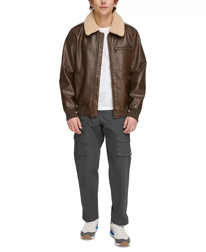 Combine style and comfort with the Levi's Men's Sherpa Collar Faux Leather Bomber Jacket. This iconic pilot jacket offers both a stylish look and keeps you warm in cold weather with its durable outer surface and soft Sherpa collar. The classic design blends with modern details to suit every style. The jacket is ideal for everyday use and can accompany you on your special occasions. Produced with Levi's quality, this bomber jacket will be an indispensable part of your wardrobe for many years. The extra warmth and comfort provided by the Sherpa collar make your time spent outdoors in cold weather more enjoyable. You can safely carry your belongings thanks to the zippered pockets. Ribbed cuffs and hem ensure the jacket fits snugly to your body, preventing cold air from entering. The quilted lining on the inside increases the wearing comfort of the jacket. Whether you combine it with jeans or chino pants, this jacket will always make you look stylish and cool. Reflect your style and enjoy the cold weather with the Levi's Men's Sherpa Collar Faux Leather Bomber Jacket. This jacket is not just a piece of clothing, but also a style statement. Add this jacket to your wardrobe to feel safe and stylish. This bomber jacket, which is carefully designed in every detail, is both a functional and fashionable option. Being produced with Levi's assurance is a sign that the jacket will be long-lasting and durable. This jacket not only keeps you warm but also highlights your style. The softness of the Sherpa collar and the elegance of the faux leather outer surface make this jacket unique. You can safely carry your phone, wallet or keys thanks to the zippered pockets. Ribbed cuffs and hem ensure the jacket fits snugly to your body, preventing cold air from entering. The quilted lining on the inside increases the wearing comfort of the jacket. This jacket can be worn in every season and used with different combinations. Levi's Men's Sherpa Collar Faux Leather Bomber Jacket is a candidate to be indispensable for stylish men. Offering style and comfort together, this jacket will be one of the most valuable pieces of your wardrobe.