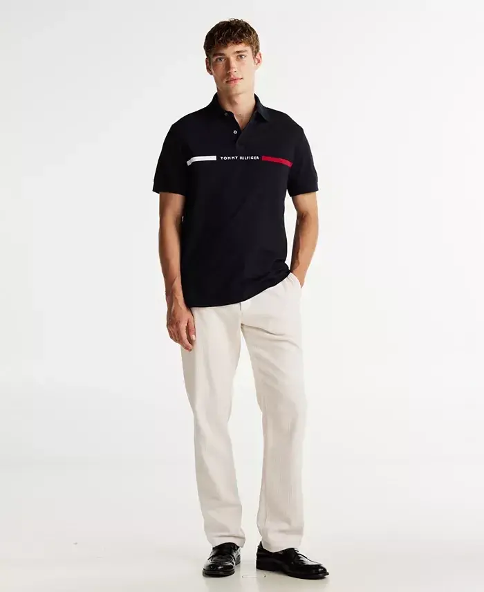 Crown your day with style and comfort! The Men's Short Sleeve Embroidered Chest Stripe Polo Shirt-Desert Sky is the perfect choice, combining classic elegance with a modern touch. With its elegant design and soft texture, this polo shirt will suit every occasion, offering both comfort and style. Made from high-quality fabric, this polo shirt will make you feel free and stylish in any environment, from everyday use to special events, and will become an indispensable part of your wardrobe. The embroidered Tommy Hilfiger logo stripe on the chest adds a sophisticated touch to the design, while the classic polo collar and three-button front closure offer timeless elegance. Made from a 96% cotton and 4% elastane blend with slight elasticity, the fabric provides a comfortable wearing experience all day long. The perfectly fitting classic cut elegantly reveals your body lines, while the 28.5-inch length (for size M) allows for comfortable freedom of movement. Machine washable, it also saves you time with its practical and easy care. Highlight your style with the magnificent shade of Desert Sky and experience this unique polo shirt now!