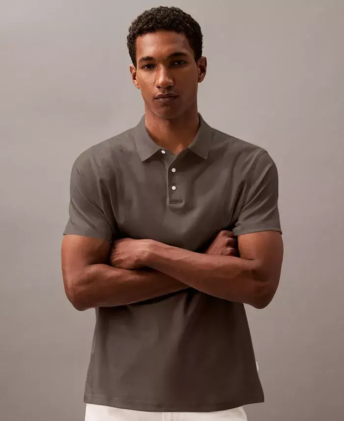Crafted from soft supima cotton for premium breathable comfort, this Calvin Klein polo shirt features a refined solid look. Classic fit Polo collar; three-button placket clousure Short sleeves Vented hem 100% cotton Machine wash Imported