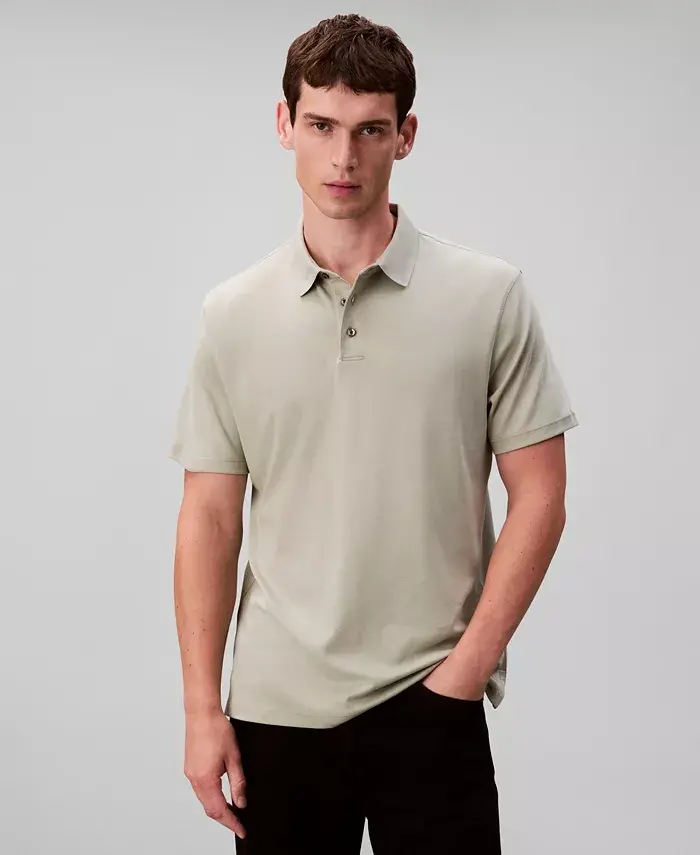 Crafted from soft supima cotton for premium breathable comfort, this Calvin Klein polo shirt features a refined solid look. Classic fit Polo collar; three-button placket clousure Short sleeves Vented hem 100% cotton Machine wash Imported