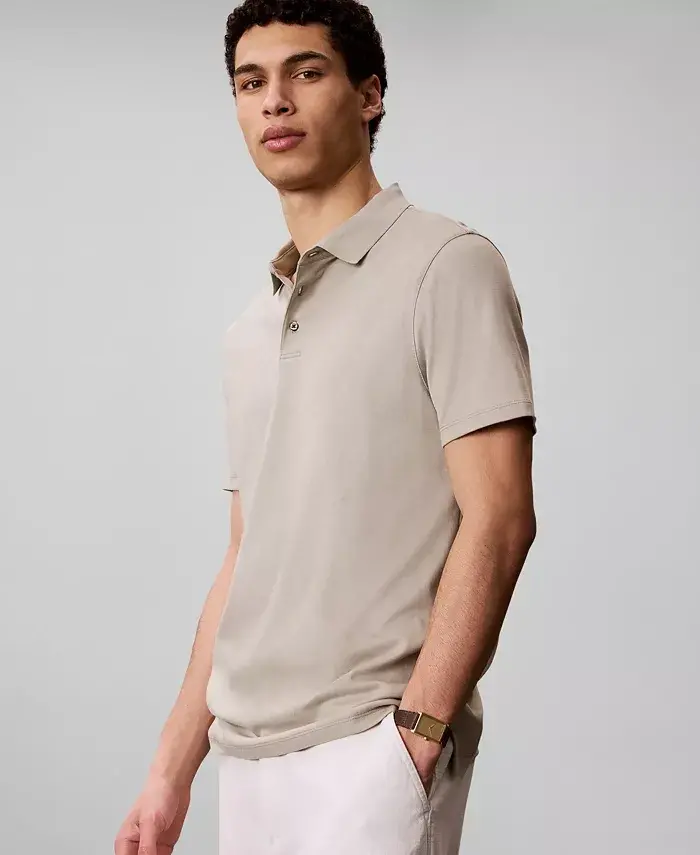 Crafted from soft supima cotton for premium breathable comfort, this Calvin Klein polo shirt features a refined solid look. Classic fit Polo collar; three-button placket clousure Short sleeves Vented hem 100% cotton Machine wash Imported