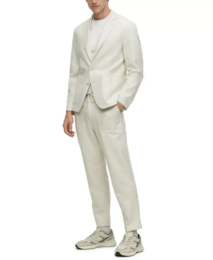 A regular-fit T-shirt in single jersey with signature stripes on the cuffs by BOSS menswear. The model is a size 32R and is 6'2" tall with a, 38" chest, 29" waist and 36" hips Regular fit Neckline- crew neck Short sleeves Standard length All cotton Machine washable Imported