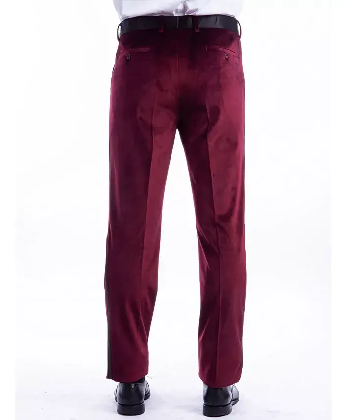 Elevate your wardrobe to the peak of elegance and modernity with Men's Skinny Modern Fit Velvet Tuxedo Dress Pants - Burgundy. These specially designed pants are a timeless piece that every man should have in his closet. Whether it's a special occasion, an elegant dinner, or simply to reflect your style in everyday wear, they are the perfect choice. With their body-hugging cut and modern details, these pants will make you stand out in any environment. Thanks to the skinny modern fit, they offer a comfortable fit from the waist through the hip and thigh area, and the straight leg cut creates a modern look. The hidden expandable waistband provides all-day comfort, while the zip fly with hook-and-eye closure completes the elegance. The flat front design of the pants adds an elegant and sophisticated touch, while the slanted side pockets and buttoned welt pockets at the back offer functionality. The high-quality polyester and rayon blend fabric ensures that the pants are both durable and fit perfectly on you. The velvet texture offers a luxurious and eye-catching look. The burgundy color combines classic and modern styles, making it compatible with all kinds of combinations. These pants, which go perfectly with shirts and blazer jackets, will accompany you from your 9-5 working hours to your special nights. Men's Skinny Modern Fit Velvet Tuxedo Dress Pants are not just pants, but a style statement. Designed for men who take care of themselves and do not want to compromise on their elegance. With these pants, which will be an indispensable part of your wardrobe, you can always have a striking and unique look. These pants are candidates to be one of the most exclusive and sought-after pieces of men's fashion. Whether you combine it with a tuxedo or use it with a more casual style, guarantee your elegance in any case.