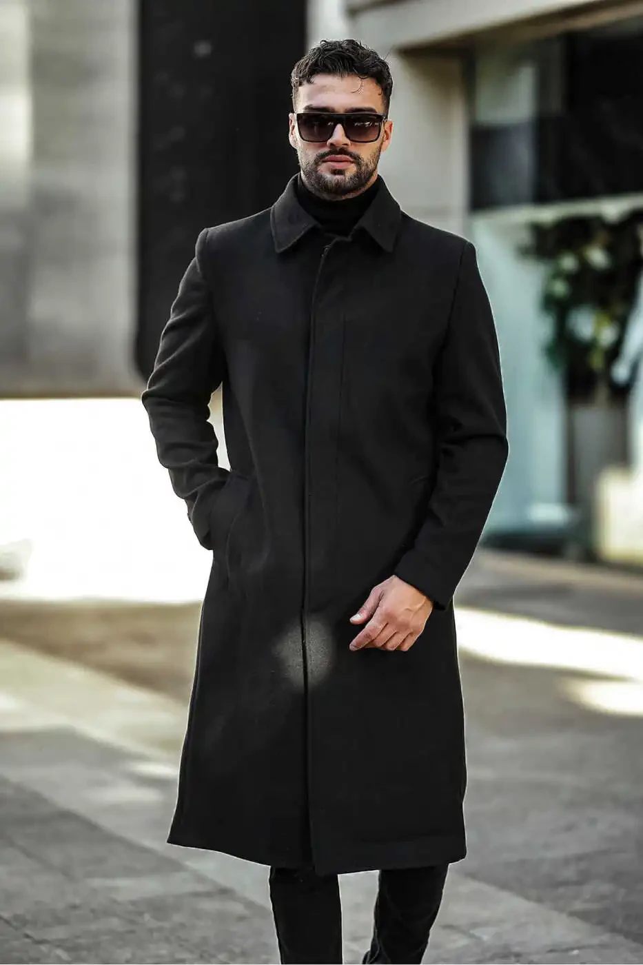 Our men's slim fit long wool coat offers a classic design that suits all styles. You can easily choose it for everyday life, special occasions or business meetings. Our coat will add a stylish touch to your wardrobe with different color options and help you look stylish at all times.