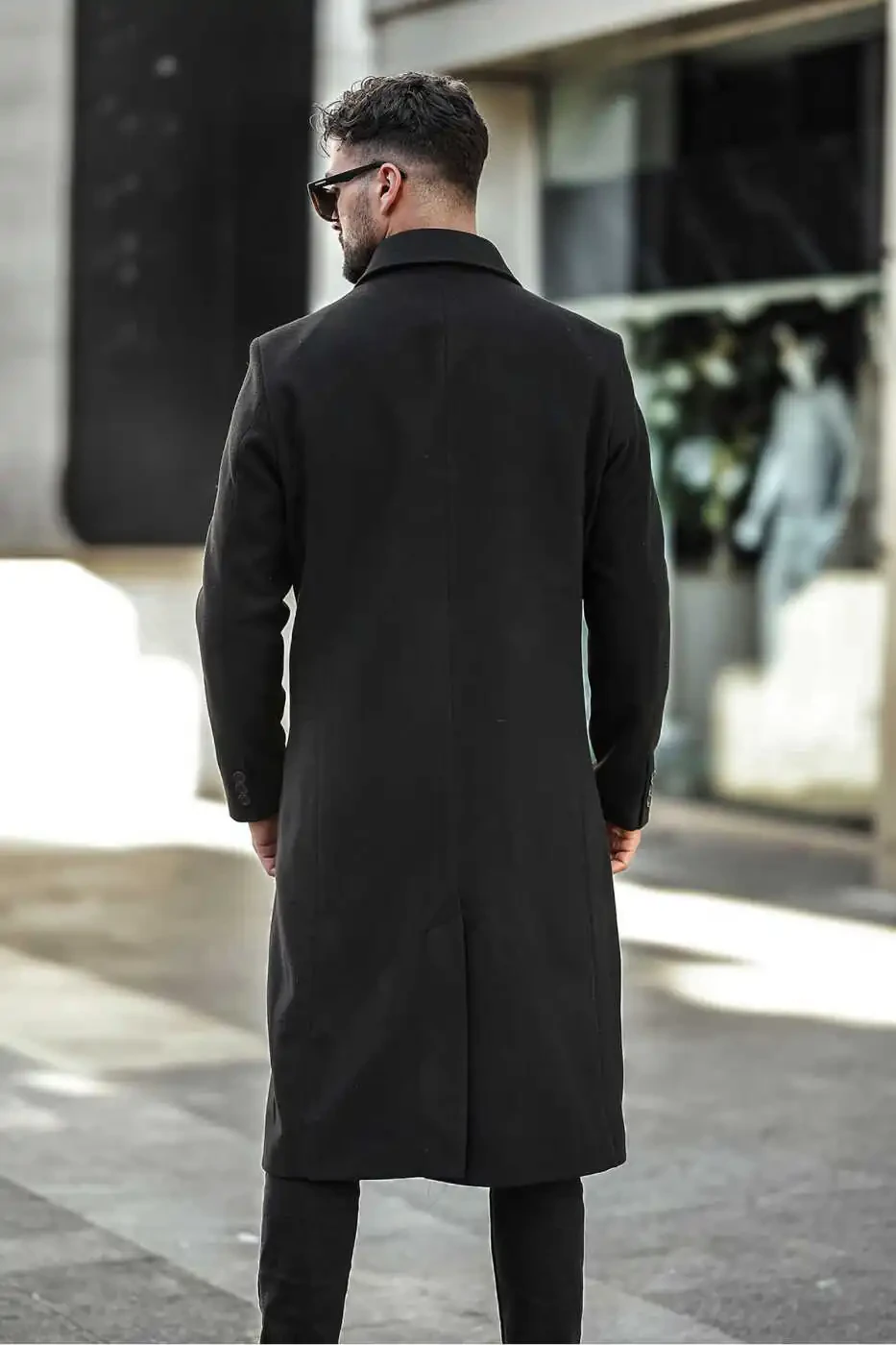 The perfect way to stay stylish and warm on chilly winter days is with our men's slim fit long wool coat. This coat, with its elegant stance and sophisticated design, combines style and warmth.