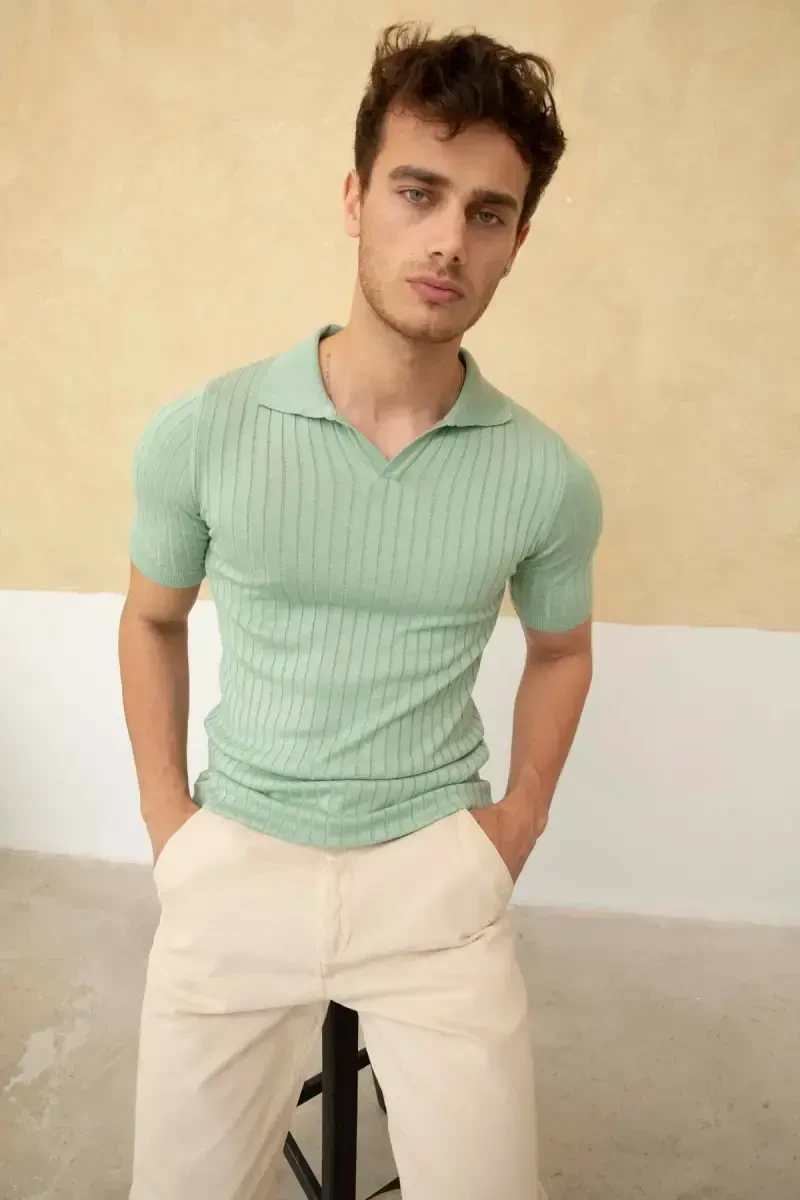 Men's Ribbed Polo Neck Knitted T-Shirt - Sea Green, is a candidate to be an indispensable part of your wardrobe! This stylish and comfortable knitted t-shirt offers a classic and modern look with its polo neck design. Its ribbed texture adds movement to the fabric, while its sea green color reflects the energy of spring and summer months. The long sleeves provide comfort in cool weather or evening activities. Thanks to its regular fit cut, it creates a comfortable and stylish silhouette that surrounds your body. You can reveal your style by combining it with jeans for daily use or with stylish trousers for more special occasions. Thanks to its quality knitted material, it offers long-lasting use and ease of washing. The liveliness of the sea green color adds a fresh touch to your combinations, while the ribbed texture adds a different dimension to the t-shirt. This knitted t-shirt will appeal to men who have style and will be an ideal choice for those who do not want to compromise on comfort. This product, which will be one of the basic pieces of your wardrobe, is a versatile option that you can easily use in any environment. You will always look stylish with this knitted t-shirt that offers elegance and comfort together. While the M size on the model offers an ideal look, alternative options are available for every body type with different size options. In addition to the sea green color, you can enrich your wardrobe with different color options. The soft texture of the knitted fabric provides comfort all day long, while the polo neck detail completes your elegance. Make your style speak with the Men's Ribbed Polo Neck Knitted T-Shirt - Sea Green!