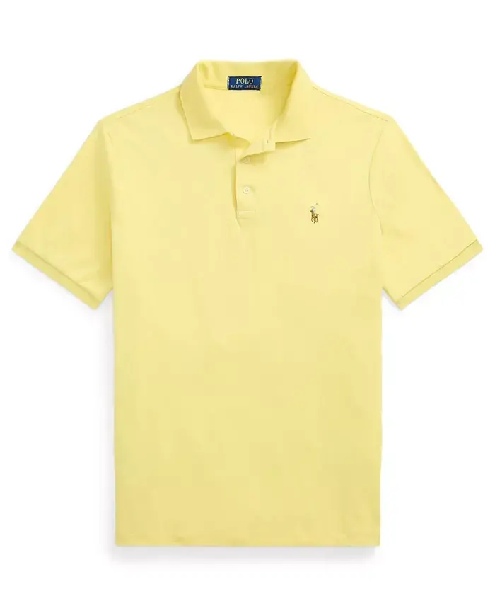 Instantly recognizable by the signature embroidered pony, which requires a total of 1,500 individual stitches to produce, Ralph Lauren's Polo shirt has been an icon of American style since 1972. This version is cut for a slim-fit from soft cotton, offering a smoother surface than Polo Ralph Lauren's original mesh fabric. Approx. model height is 6'1" and he is currently wearing a size medium Custom slim fit: a trim silhouette in between Polo Ralph Lauren's classic fit and slim fit Ribbed Polo collar; three-button placket Sleeve hugs the bicep Tailored through the waist Short sleeves with ribbed armbands Even vented hem Multicolored signature embroidered pony at the left chest 100% cotton Machine wash Imported