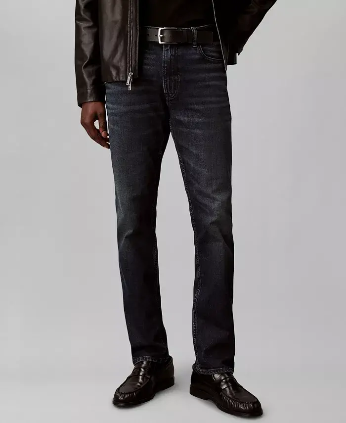 Updated with signature metal logo hardware, these Calvin Klein jeans are cut in a slim-fit with stylish detailing and reinforced seams. Slim-fit: sits below waist, slim leg Zip fly with button closure Two front pockets; coin pocket; two back pockets 10 1/2" rise; 32" inseam; 14" leg opening based on a size 32 Model is approximately 6'1" and wearing a size medium 98% cotton, 2% elastane Machine wash Imported