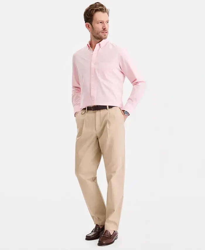 Men's Solid Stretch Oxford Cotton Shirt, Created for Modazone - Solid Oxford - Pink Streak