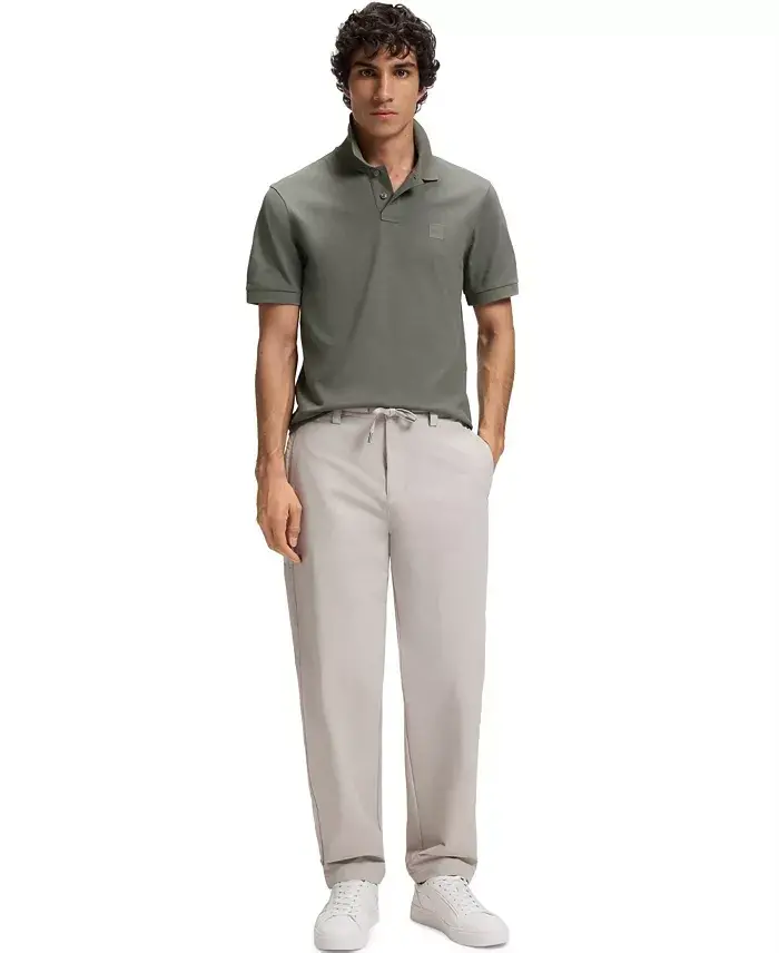 Featuring a woven logo patch, this versatile BOSS menswear polo shirt is crafted in sporty stretch-cotton piqué. Cut to a slim fit. The model wears a size M and is 6' 3" tall, with a 38" chest, 31" waist and 39" hips Slim fit Flat-knit collar Number of buttons: 2 Short sleeves Flat-knit cuffs Standard length Closure: Slip on 95% cotton, 5% elastane Machine wash Imported