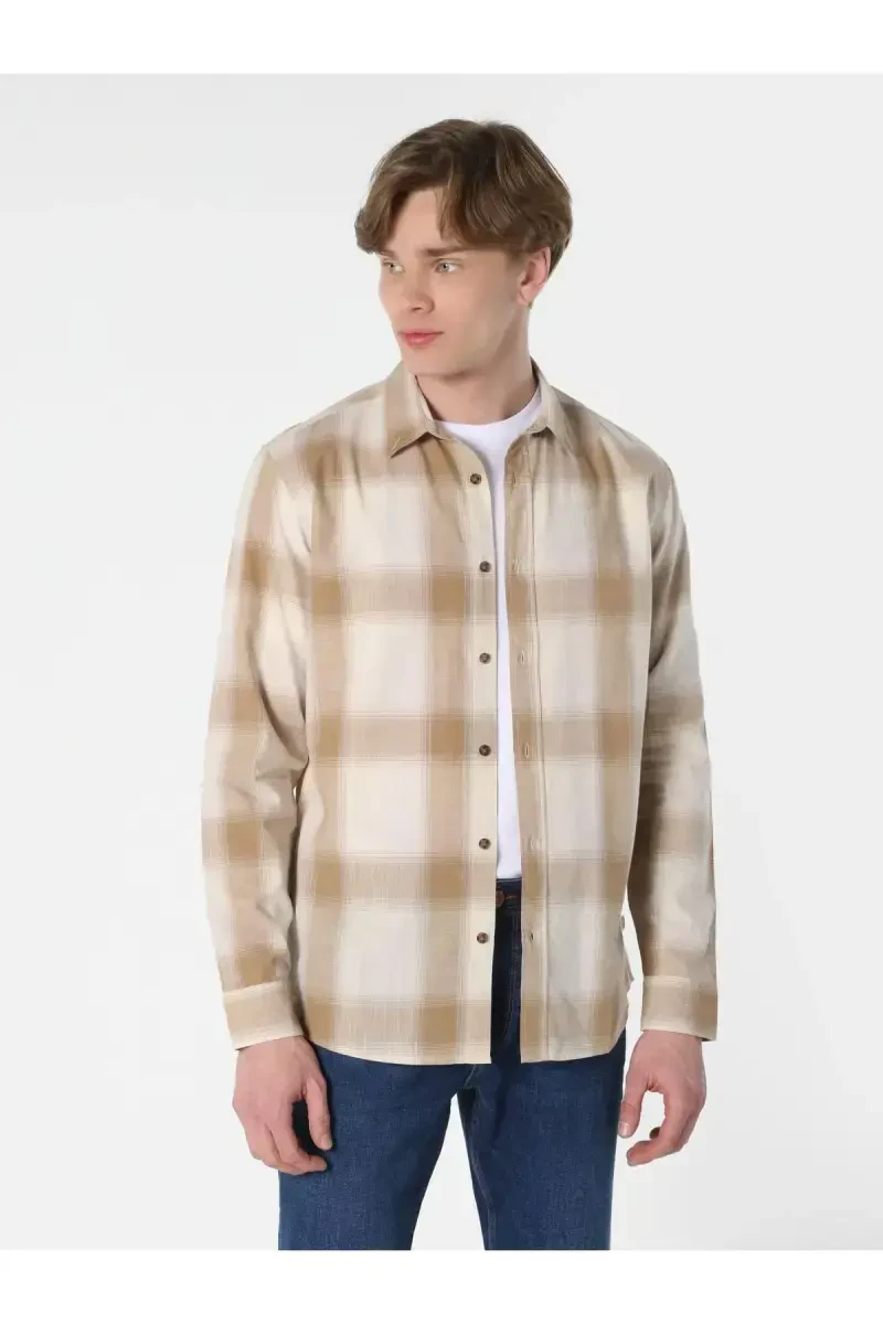 The classic regular fit cut provides a perfect fit for your body, offering freedom of movement. Its long sleeves and classic collar detail make it an ideal choice for any combination. The beige color can be easily combined with any color pants and accessories. Add this stylish shirt that reflects your style to your cart now!