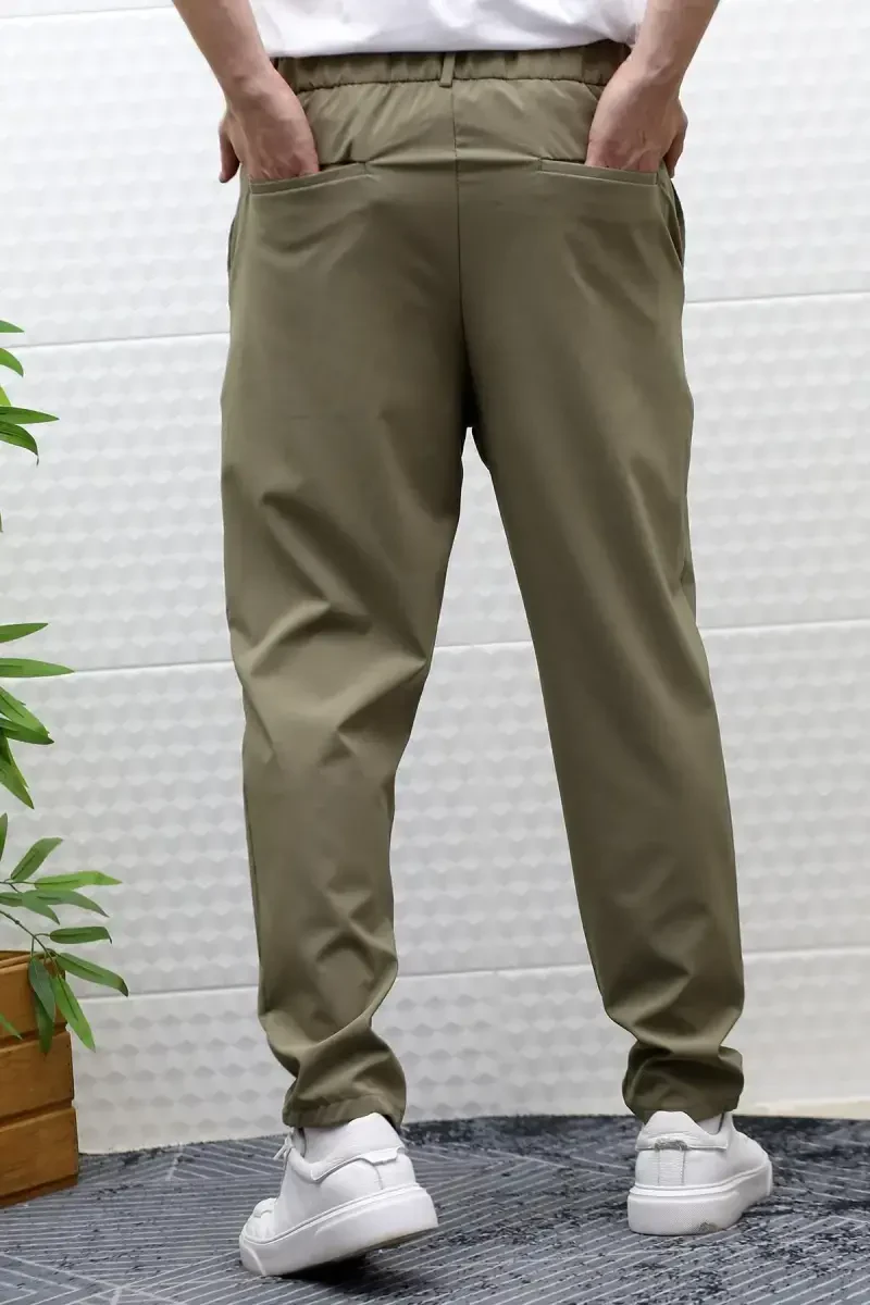 The Men's Summer Parachute Fabric Full Lycra Trousers - Khaki Green, offered by Wafrazon, are an ideal option that combines comfort and style in warm weather. These trousers stand out with their comfortable jogger model, while their design suitable for daily use allows them to be easily preferred in any environment. The regular fit provides a perfect fit for different body types, offering all-day comfort. The lightness and breathability of the parachute fabric keep you feeling cool and fresh on hot summer days. The sash detail delicately emphasizes the waist area, creating a modern silhouette, while also providing extra comfort thanks to its adjustability according to personal preferences. Its thin structure increases the lightness of the trousers and does not restrict your freedom of movement. With these features, it becomes a piece that you can easily use both in the city and on vacation. The khaki green color offers a stylish and natural look, while the plain pattern makes it easy to combine with different upper garments. This means it is a versatile pair of trousers that you can use in harmony with other pieces in your wardrobe. The lycra interlock knit type adds flexibility to the fabric, increasing your freedom of movement. Whether you are doing sports or performing your daily activities, these trousers provide you with maximum comfort. The normal waist height offers all-day comfort, while being suitable for washing instructions at 30 degrees makes it easy to care for. In this way, you can use your trousers like the first day for a long time. These trousers, which appeal to all age groups, are a must-have piece in the wardrobe of stylish men. Whether you create a sporty look with t-shirts or a more stylish style with shirts, these trousers will always complement your style. Offering both comfort and elegance together, these trousers are candidates to be indispensable in the summer months. It will accompany you in any environment, from daily use to special events, and will prioritize your style and comfort.