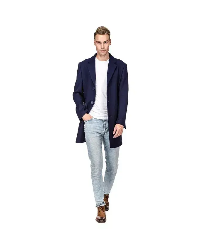 Every man needs a classic wool coat in his wardrobe. It also comes in a wide range of classic colors so you can coordinate with your favorite suit or tie. This coat can be worn with formal outfits but also looks great with a hooded sweatshirt and jeans. Model's Height 6'2 Weight 170 lbs Model is Wearing a Size Small Front Button Closure, Fully lined. Soft, high quality wool blend Two side pockets, stitches need to be cut open with scissors (sewn shut for shipping purposes) Dry Clean Only, Materials: 35% wool, 45% polyester, 5% nylon, 15% other. 35% wool, 45% polyester, 5% nylon, 15% other Dry clean Imported
