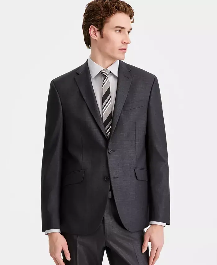 Showcase your sophisticated style with the Kenneth Cole Reaction Men's Techni-Cole Suit Separate Slim-Fit Suit Jacket, a sleek, slim-fitting design. The striking gunmetal gray color offers instant sophistication and a polished look. Engineered for comfort and impeccable style, this suit jacket features side vents, flex armholes, and a performance stretch fabric that allows for unrestricted movement to handle the demands of your day. Maintain your style without sacrificing mobility. Its slim fit through the shoulders, chest, and waist, along with high armholes and leaner sleeves, creates a superior silhouette. This suit jacket will empower you with a strong look in the business world. Jacket sizes are indicated by a number and letter combination; the number represents chest size and the letter represents jacket length based on your height: S=170 cm and under; R=173 cm-180 cm; L=183 cm and over. Matching trousers sold separately.