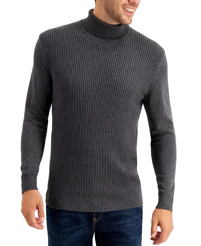 Textured cotton elevates the style of this classic turtleneck sweater from Club Room. Turtle neck OEKO-TEX® STANDARD 100 certified. Tested in an independent lab and verified to be safe from harmful substances [14.HBD.47176| HOHENSTEIN] Created for Modazone All cotton Machine washable Imported