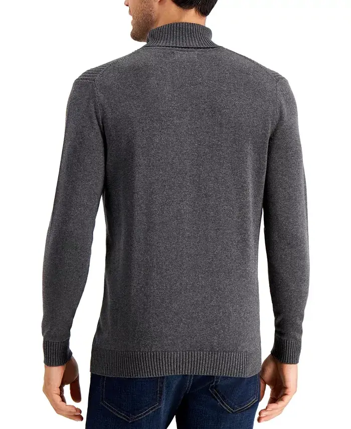 Men's Textured Cotton Turtleneck Sweater, Created for Modazone - Charcoal Heather
