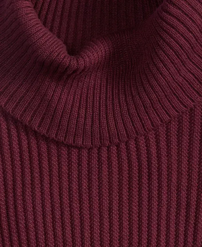 Men's Textured Cotton Turtleneck Sweater, Created for Modazone - Red Plum