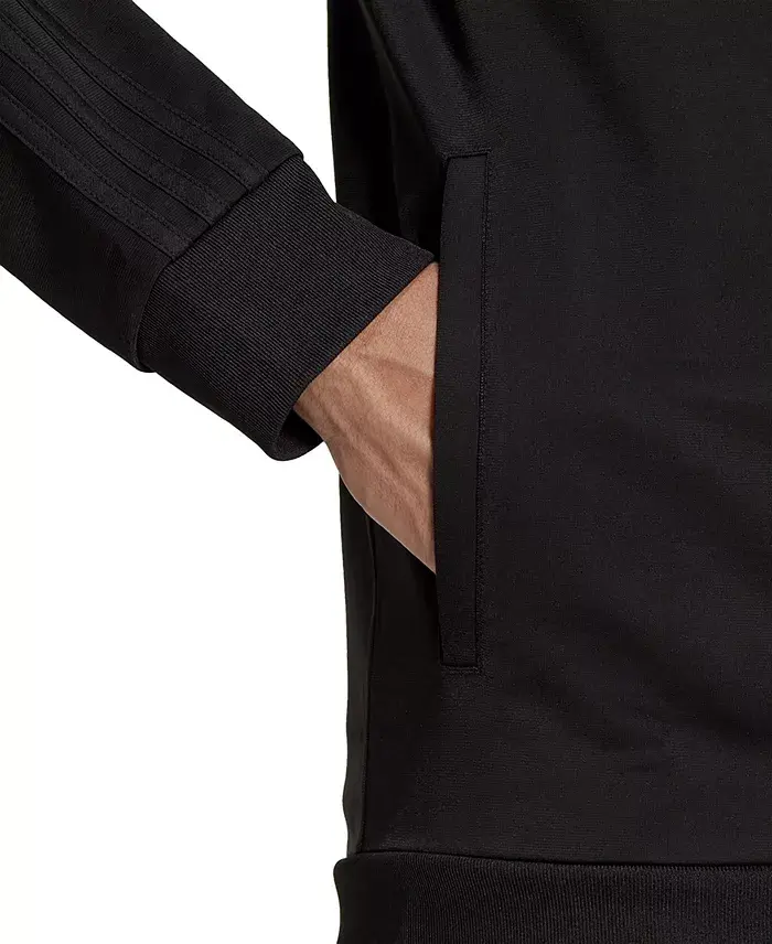 Meet the Men's Tricot Track Jacket-Black/Black! This stylish and functional jacket is the perfect choice to accompany you as you prepare for your workouts or complete your daily style. There's a reason it's called a "warm-up jacket": It's the ideal layer to get your mind and muscles moving. Made from classic athletic tricot fabric, this adidas jacket offers a smooth look and feel. Ribbed details help keep the jacket in place on your body, while the full-length zipper makes it easy to take on and off during training.This versatile jacket is not limited to the gym. It has a stylish design that you can easily use in everyday wear. The iconic 3-stripe detail highlights the jacket's sporty heritage, while the modern cut allows it to adapt to any environment. Whether you're going to a workout, meeting up with friends, or just having a relaxing day, this jacket can accompany you.The Men's Tricot Track Jacket also prioritizes sustainability. Made from recycled materials, it allows you to make an environmentally conscious choice. It is an ideal option for those who want to be both stylish and conscious consumers.This jacket is not just a piece of clothing, but also a lifestyle statement. Combining sport and style, this design will be an indispensable part of your wardrobe. Complete your style with the Men's Tricot Track Jacket, which combines the nobility of black and the quality of adidas. Increase your performance and always look stylish!