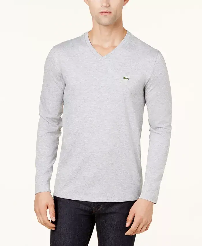 Lacoste Men's V-Neck Long Sleeve T-Shirt | Cotton, Stylish, and Comfortable