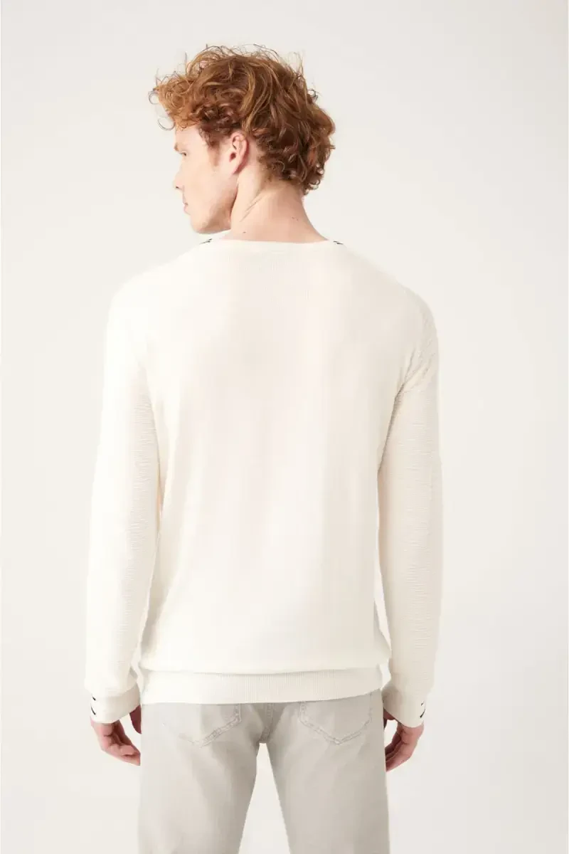 Combining style and comfort, the Men's White Crew Neck Long Sleeve Knitted Soft Touch Regular Fit Sweater A31y5108 will be an indispensable part of your wardrobe. Offering all-day comfort with its soft touch fabric, this sweater features a crew neck detail and long sleeve knit for a modern look. The regular fit will ensure a perfect fit for your body, making the sweater an ideal choice for various combinations.