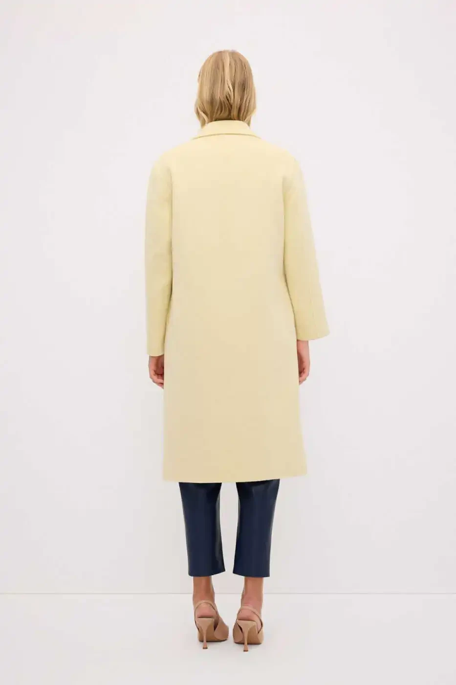 The size on the model is M. Dry cleaning is recommended for the coat to last longer. Please follow the washing instructions on the label. Colors may vary depending on screen brightness and settings. The wool ratio used in the fabric of the product is 50%. Other fibers have been added to increase durability and comfort.