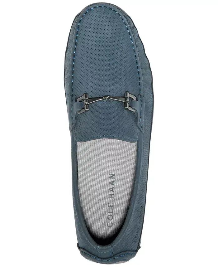 In smooth leather and adorned with a simple metal bit accent, the cushioned Wyatt Driver Loafer from Cole Haan delivers on luxurious, easy-going style. Moc-toe slip-on driver loafer Metal bit detail at instep Lightweight construction; textile lined with cushioned footbed; rubber driver pod outsole for ultimate comfort, flexibility and durability Leather upper; rubber outsole Wipe clean Imported