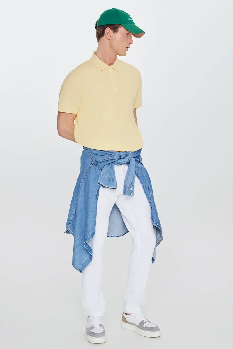 Meet the Men's Yellow 100% Cotton Non-Crease Pique Polo Collar Slim Fit T-Shirt, which perfectly adapts to today's dynamic lifestyle, offering both elegance and comfort! This unique design will be an indispensable part of your wardrobe and will take your style to the next level in any environment. Its breathable 100% cotton fabric, which will keep you cool especially on hot summer days, provides all-day comfort, while its non-crease pique texture eliminates the need for ironing. While adding color to your style with the energy and vibrancy of yellow, its slim fit cut gently reveals your body lines and gives a modern look. The polo collar detail combines classic elegance with a modern touch, offering an ideal option for any combination. Whether at an elegant dinner or a relaxing weekend trip, you will always dazzle with this t-shirt. Moreover, thanks to its easy-to-combine structure, it perfectly harmonizes with other pieces in your wardrobe. This t-shirt, designed for modern men who seek both elegance and comfort, will be indispensable for your wardrobe. An ideal choice for those who want to be stylish and not compromise on comfort! Discover your style again by trying this unique t-shirt and feel special in every moment. The Men's Yellow 100% Cotton Non-Crease Pique Polo Collar Slim Fit T-Shirt is not just a clothing item, it is also a reflection of your lifestyle. With it, you will increase your self-confidence, make your style speak, and draw attention to yourself in every environment. With its quality material, excellent workmanship, and modern design, this t-shirt is a candidate to be your favorite in your wardrobe for many years. Living elegance and comfort together has never been so easy! Try it now and feel the difference!