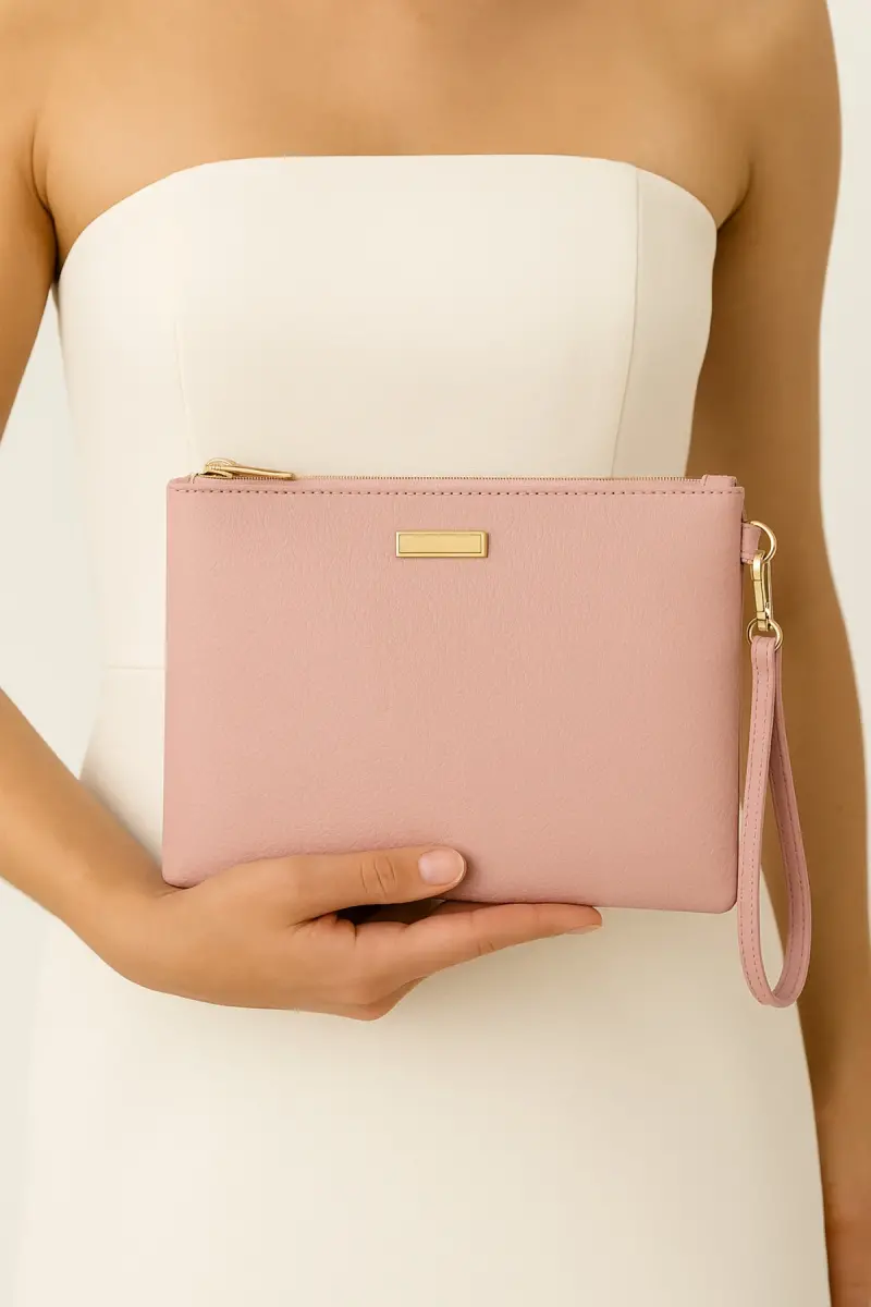 Metal Aksesuarlı El Askılı Portföy Clutch Çanta-Pudra