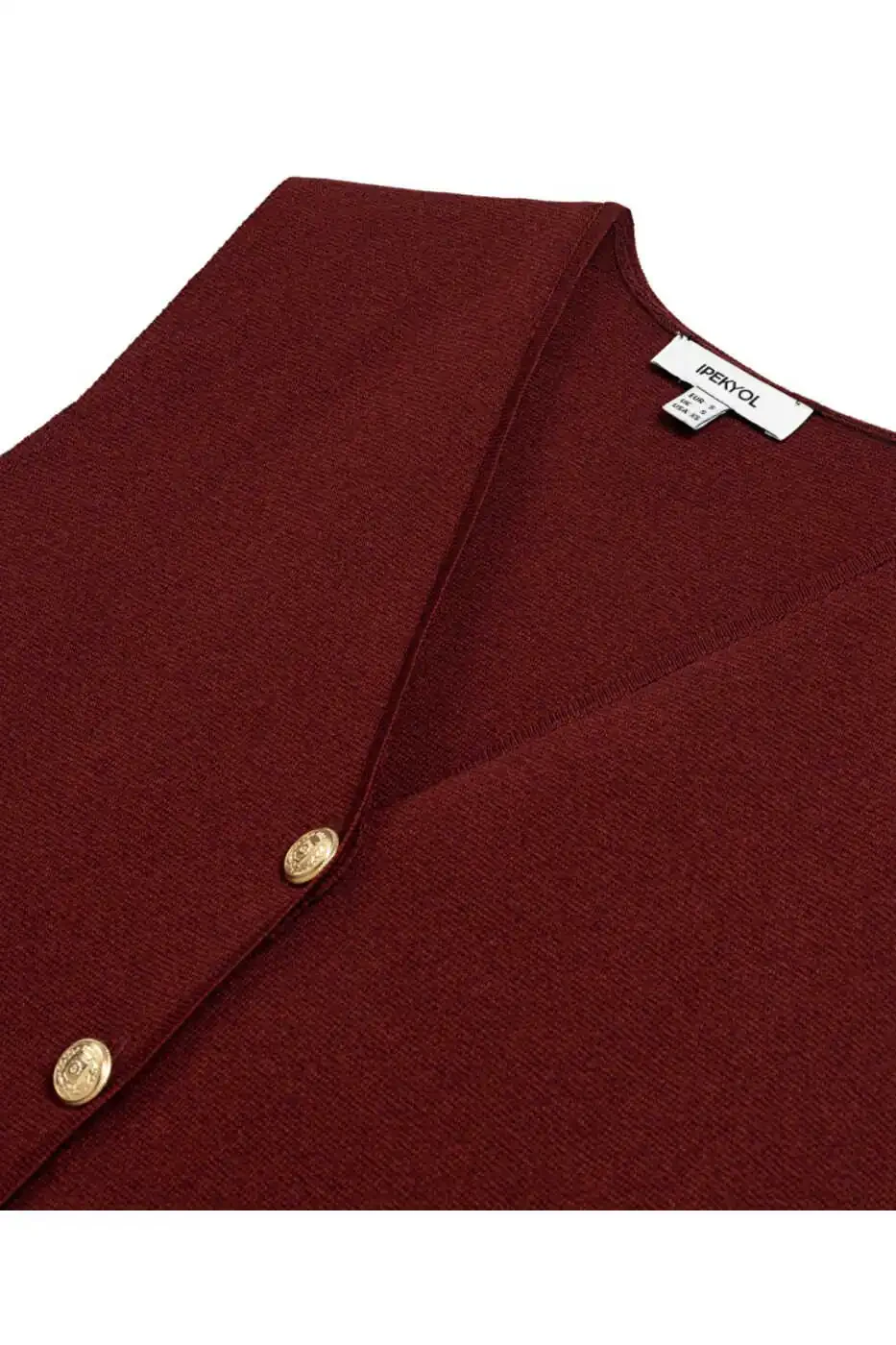 Metal buttoned knitwear is a clothing item that combines elegance and comfort, making it a must-have piece in your wardrobe. Offering a perfect option for both daily use and more special moments, this knitwear promises long-lasting use with its high-quality material and meticulous workmanship. It keeps you warm in cold weather while highlighting your style with its stylish design.Product DescriptionMetal buttoned knitwear is a carefully designed clothing item that offers a modern and elegant look. Thanks to its soft texture, it leaves a pleasant feeling on your skin and provides comfortable use throughout the day. The quality of the knitwear weave increases the durability of the product, while the metal button details add a sophisticated touch to the design. It offers alternative options suitable for every style and body type with different color and size options. Whether you create a casual style by combining it with jeans, or achieve a more stylish look with a skirt and heels. Metal buttoned knitwear is a versatile piece that will make you stand out in any environment. Thanks to the easy care of the product, you can ensure that it stays as new as the first day for a long time. Its machine washable feature offers you practicality in your busy days. The robustness of the metal buttons guarantees that they will not come loose even after long-term use. This knitwear is not just a piece of clothing, but also a form of expression that reflects your style.Product Features* Made of high quality knitwear material.* Features stylish metal button details.* Has a soft and comfortable texture.* Different color and size options are available.* Ideal for daily and special occasions.* Has easy care and cleaning feature.* Machine washable.* Long lasting and durable.* Has a modern fit that fits the body.* Skin-friendly material is used.* Button strength has been increased.* Suitable for different combinations.* Keeps you warm in cold weather.* Offers a stylish and elegant look.Additional InformationIt is important to follow the washing instructions on the label for the product to last longer. Washing the product inside out and at low temperature will help preserve the vibrancy of its colors. Avoid using bleach. Drying the product by laying it out will prevent it from deforming. You can prefer a delicate program during washing to prevent damage to the metal buttons. Our products are produced with environmentally friendly production methods. Every metal buttoned knitwear you purchase contributes to a sustainable future.