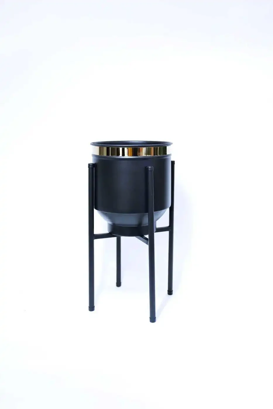Made of durable metal, this plant stand offers both strength and elegance. Its black body and gold details give it a minimalist look, making it suitable for any decoration style. At the same time, its stand structure allows you to give your plants a higher position, making the room appear wider.