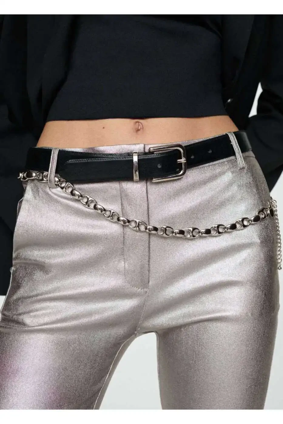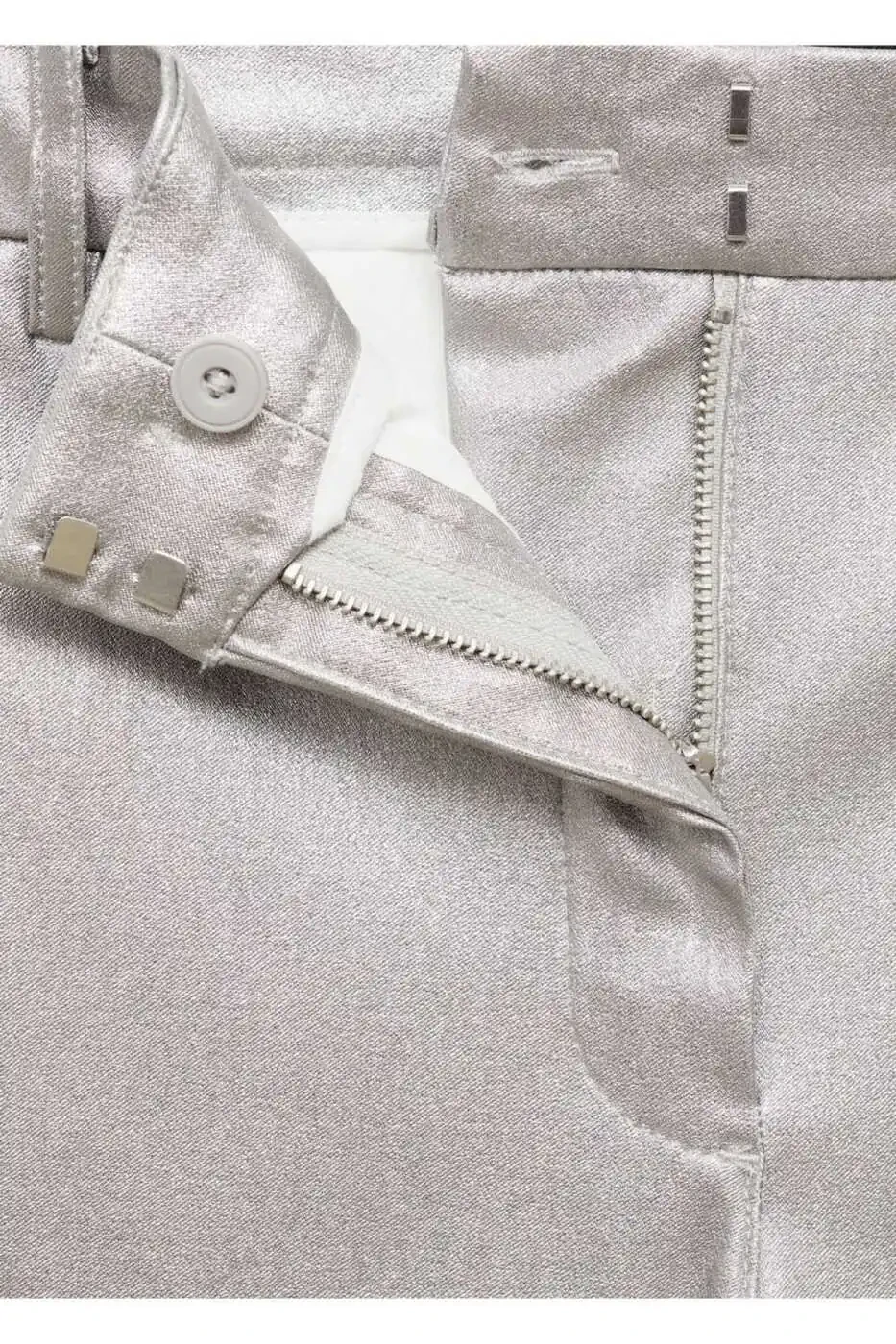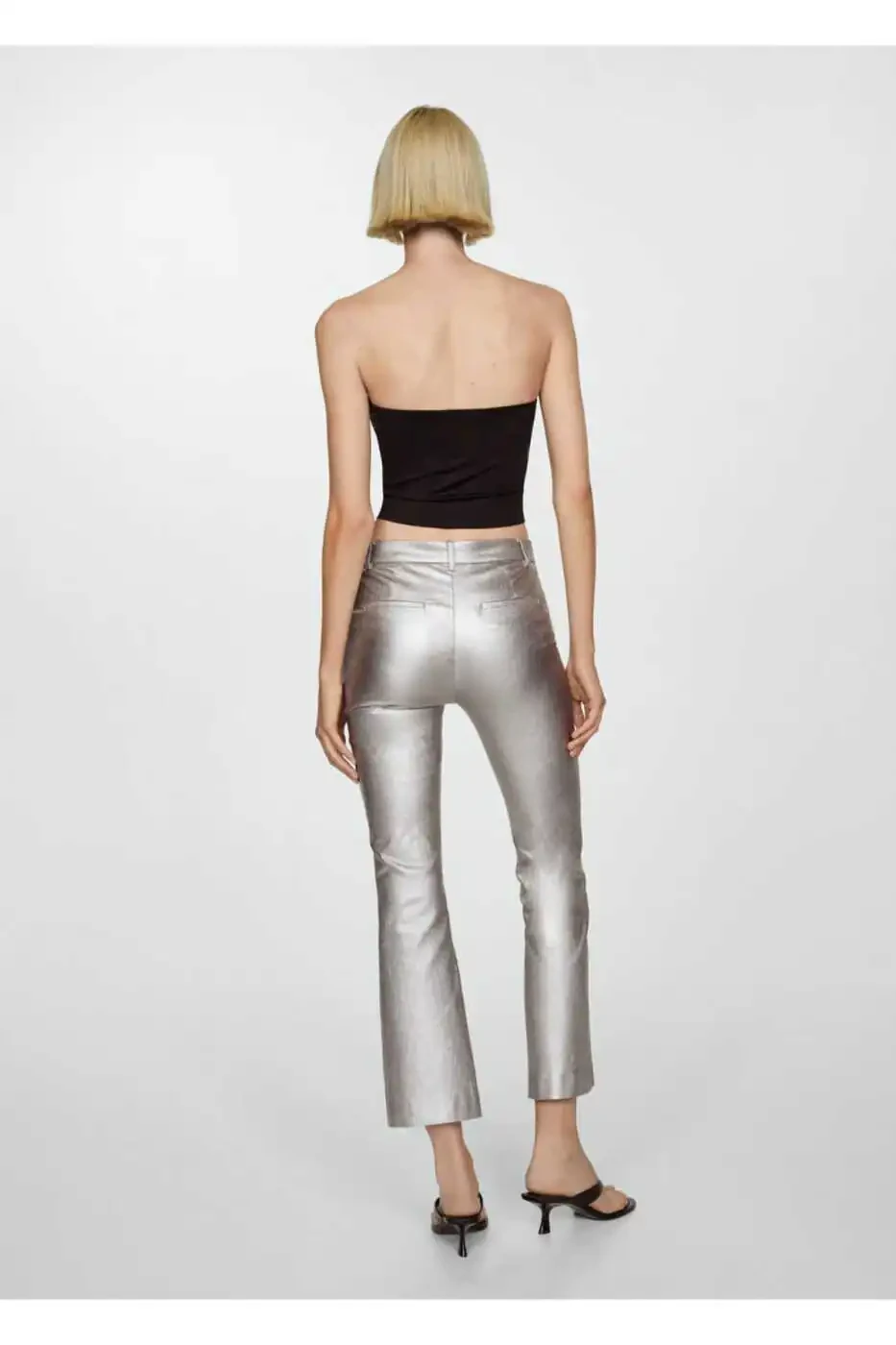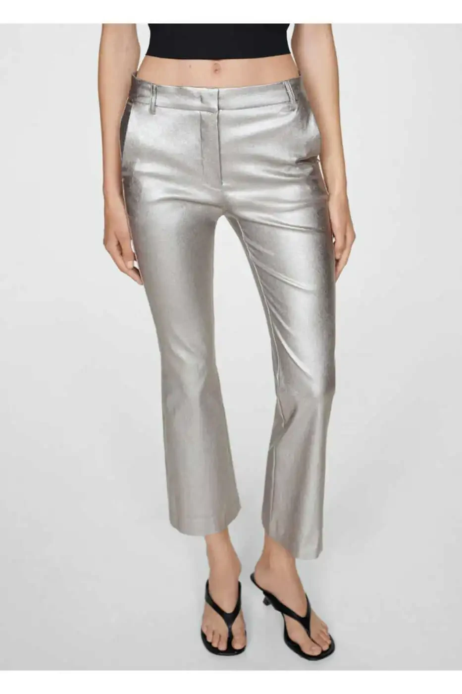Эти металлические расклешенные брюки подчеркнут ваш эффектный образ и привлекут к вам все взгляды. Укороченный дизайн позволяет демонстрировать щиколотки, а расклешенный силуэт придает вам элегантный и изысканный вид. Металлическая отделка этих брюк гарантирует, что вы будете сиять в любой обстановке. Два накладных кармана по бокам обеспечивают практичность для хранения мелких предметов. Шлевки для ремня обеспечивают идеальную посадку с вашим ремнем, а скрытая пуговица, крючок и застежка-молния обеспечивают надежную фиксацию. Изготовленные из 76% вискозы, 21% полиамида и 3% эластана, брюки имеют подкладку из 80% полиэстера и 20% хлопка. Покрытие из 100% полиуретана придает ткани прочность и блеск. Благодаря внутреннему шву длиной 71,8 см и боковому шву длиной 98,6 см эти брюки идеально сидят и подчеркивают вашу фигуру. Однако при уходе за этими брюками следует соблюдать осторожность. Их нельзя стирать, отбеливать, подвергать химчистке или сушить в стиральной машине. Глажка не должна превышать 110 °C. Максимальное количество заказа — 10 единиц. У вас есть право вернуть товар в течение 15 дней.