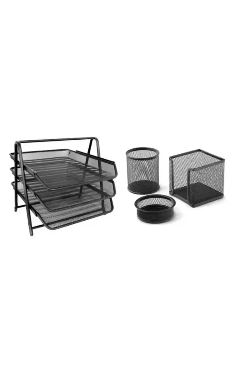 Metall Stol Usti Perfore Qog'oz Raf 3-qismli + 3-qismli Qalamlik To'plami